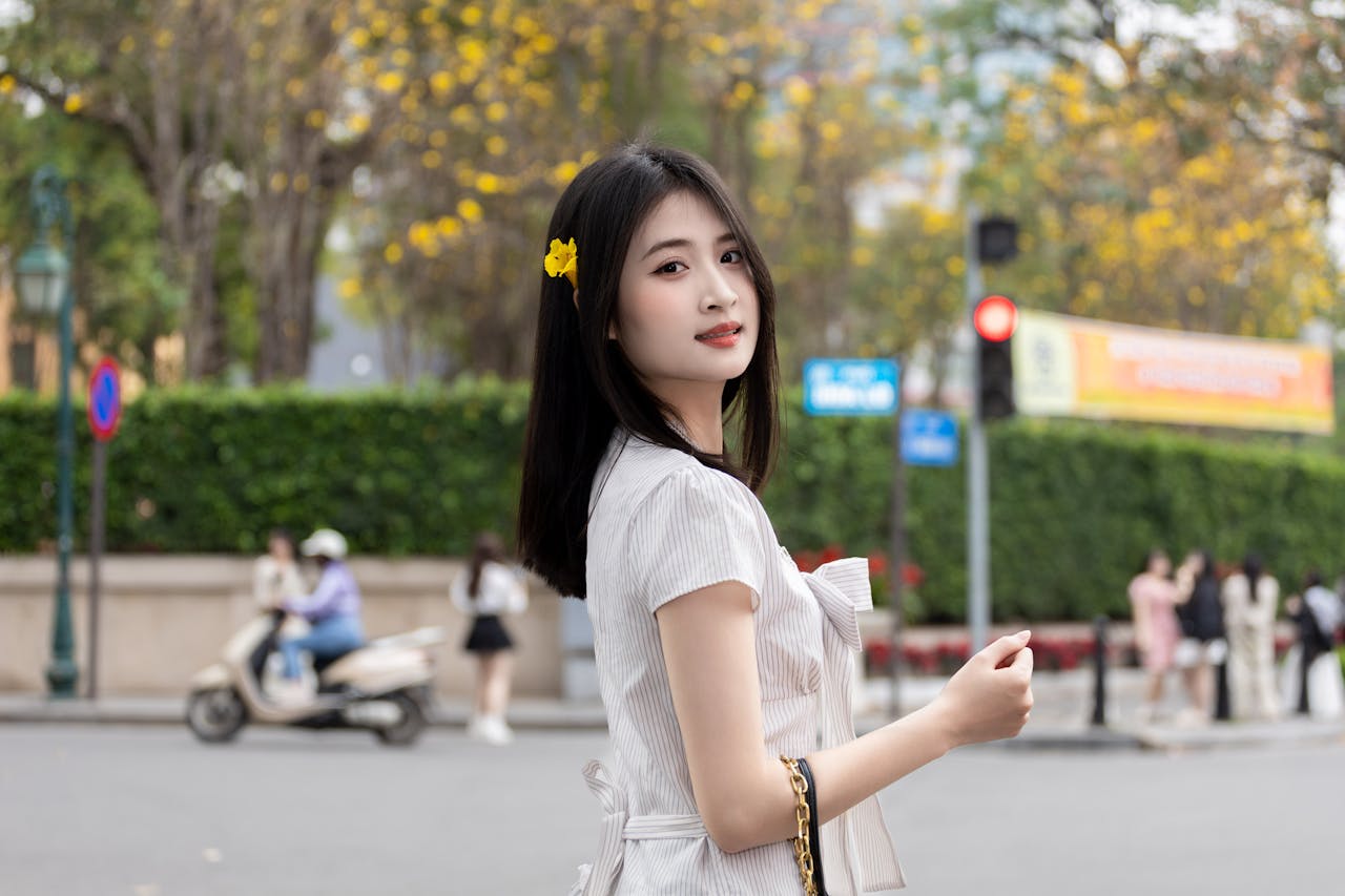 走在街头,抬头是满树金黄,低头是绿意盎然🌿风掠过发梢,带着花香和城市的烟火气,连笑容都变得软乎乎的。通勤风的穿搭,在春日的滤镜里,也能拍出元气满满的少女感,每一帧都是不刻意的温柔。
