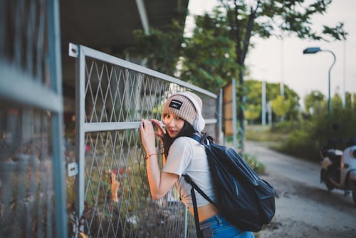 奔赴一场日落时分的山野漫游🌇简约浅蓝短袖搭配休闲牛仔裤,慵懒针织冷帽 + 头戴式耳机,清爽日常的穿搭,自带松弛随性的少年氛围感。