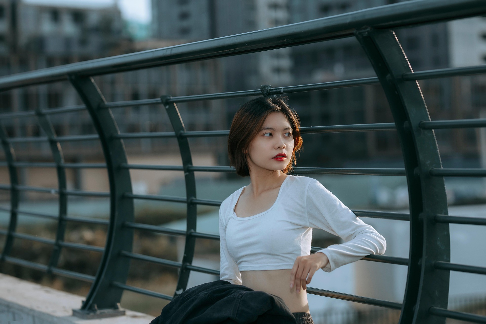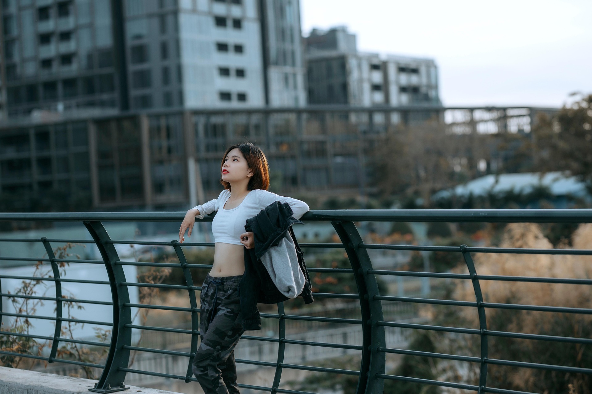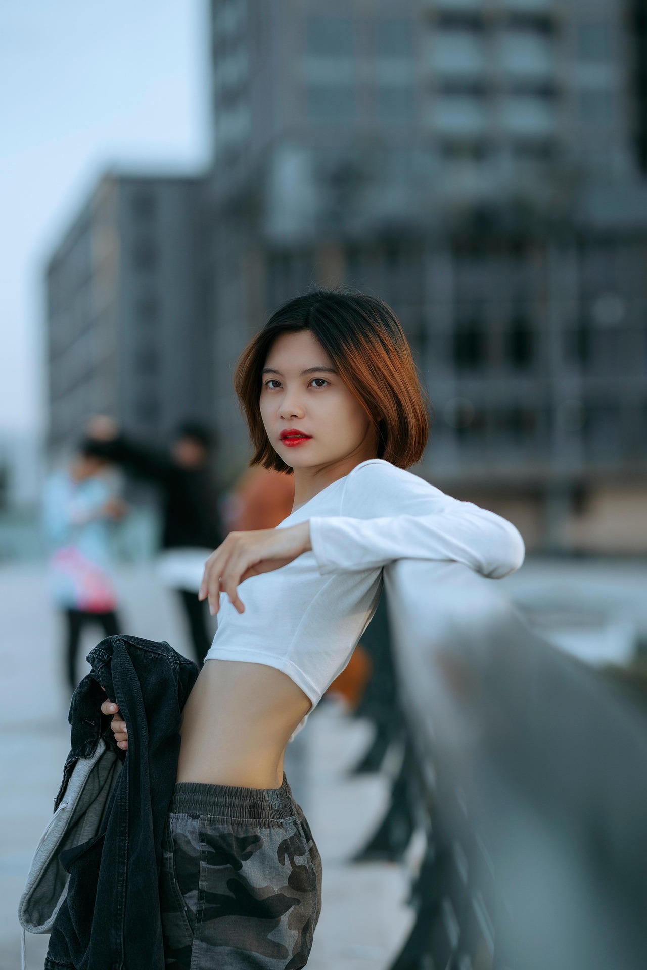 在这片钢筋水泥的怀抱里,她既是风景的旁观者,也是故事的主角,每一个眼神、每一个姿态,都诉说着都市生活独有的情绪与张力。