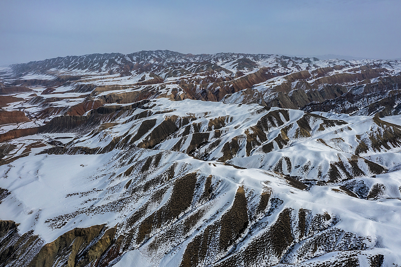 雪覆盖的札达土林,像极了一座被冻住的千层蛋糕。层层叠叠的土林肌理被白雪勾勒,棕褐色的岩壁是松软的蛋糕胚,顶部的积雪则是绵密的奶油顶,每一道纹理都是时光烘焙出的纹路,在高原上静静 “盛放”。
