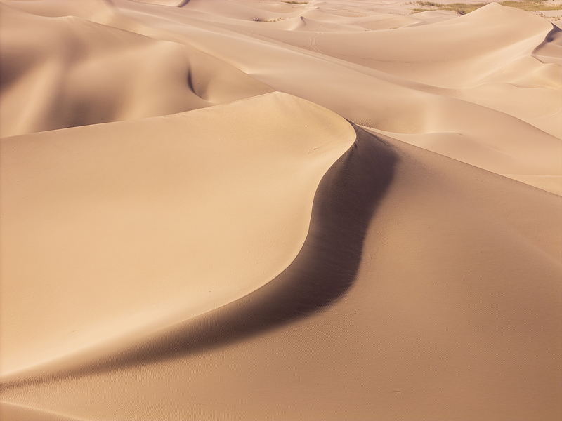 巴丹吉林沙漠的沙丘,就是一盘抹得均匀顺滑的麻酱!金黄的沙面细腻油亮,沙丘的棱线被风 “抹” 得顺滑,光影下的沙脊泛着柔光,像极了被勺子刮过的麻酱表面,连沙粒的质感都带着绵密的 “酱料感”。
