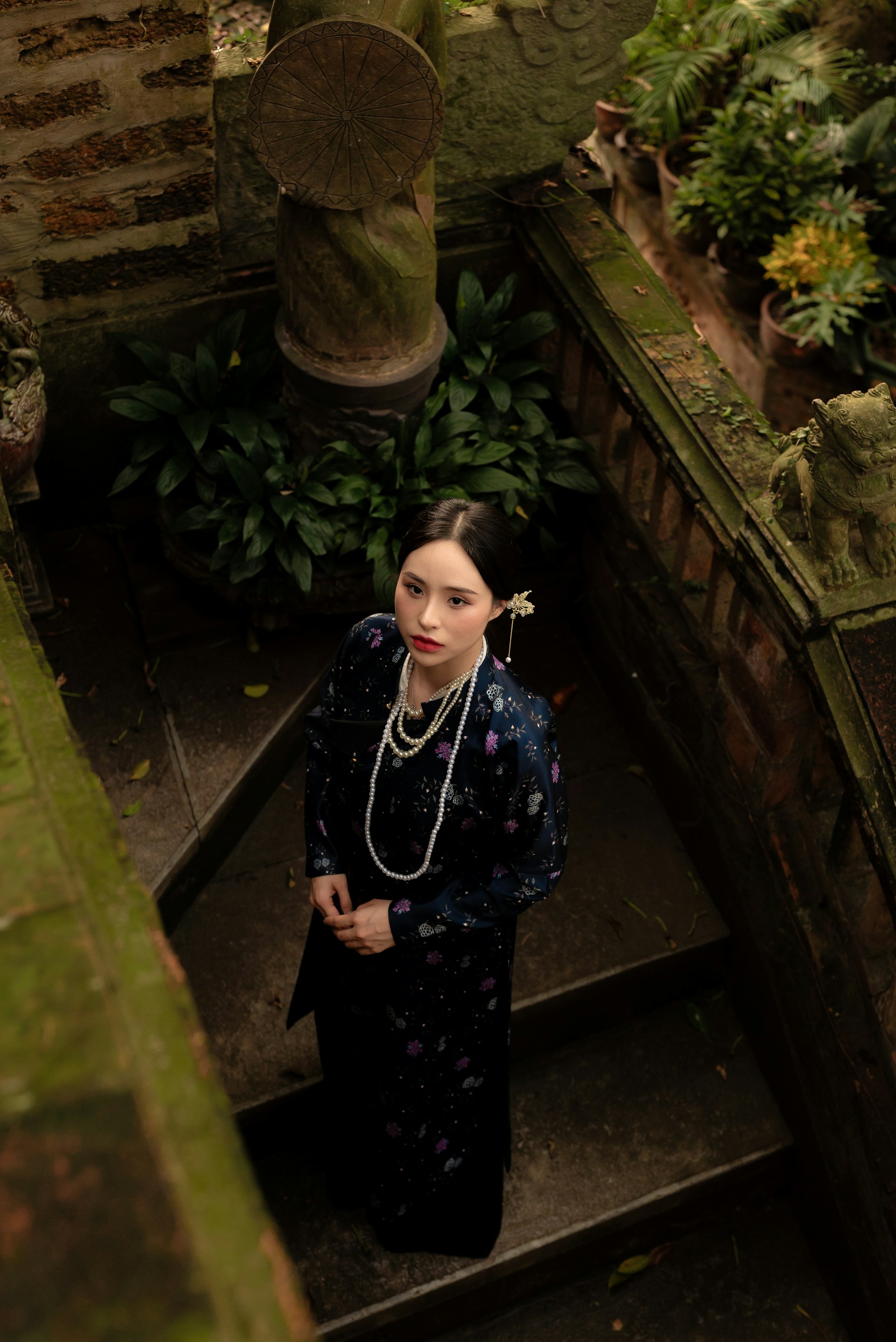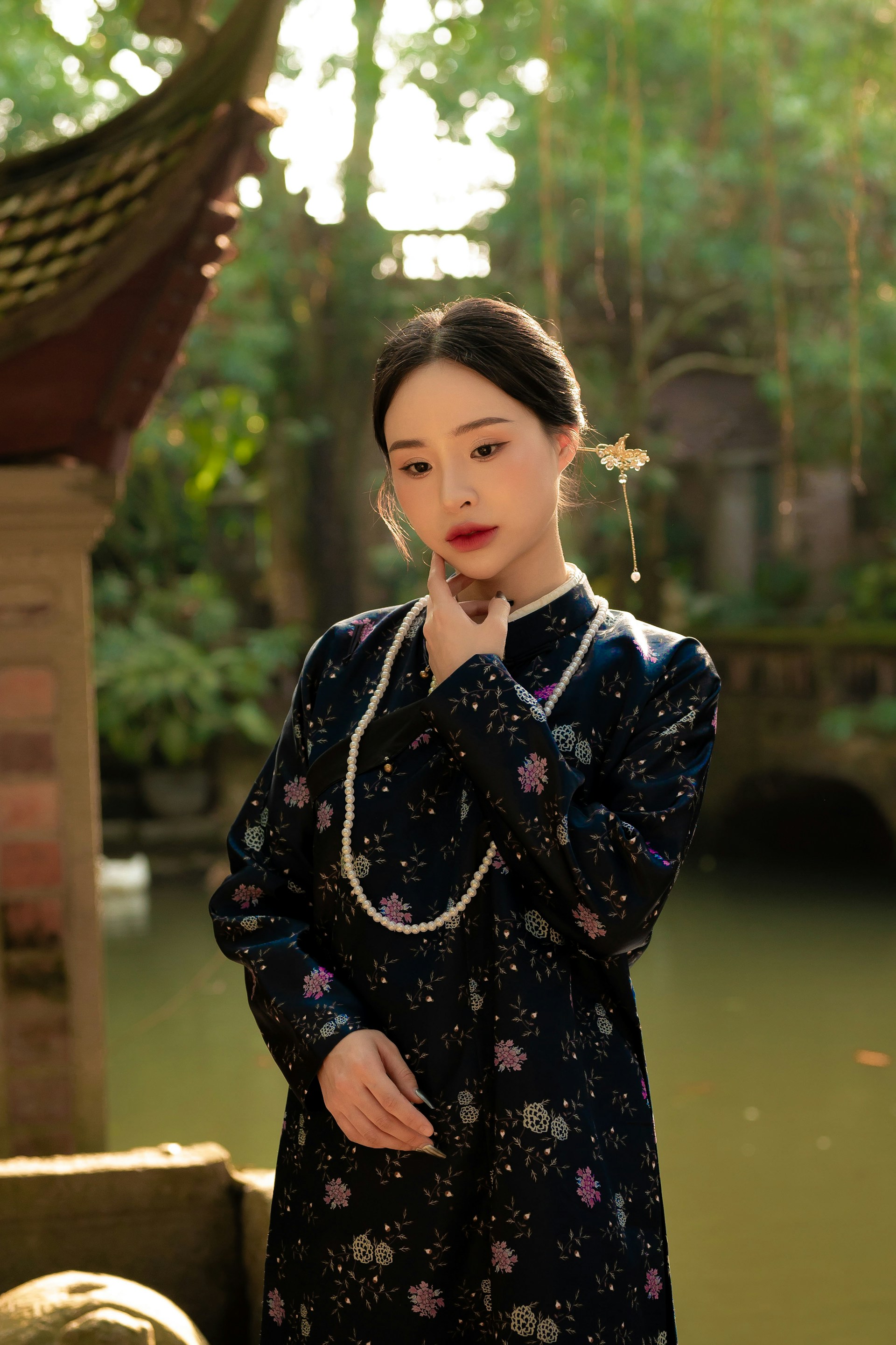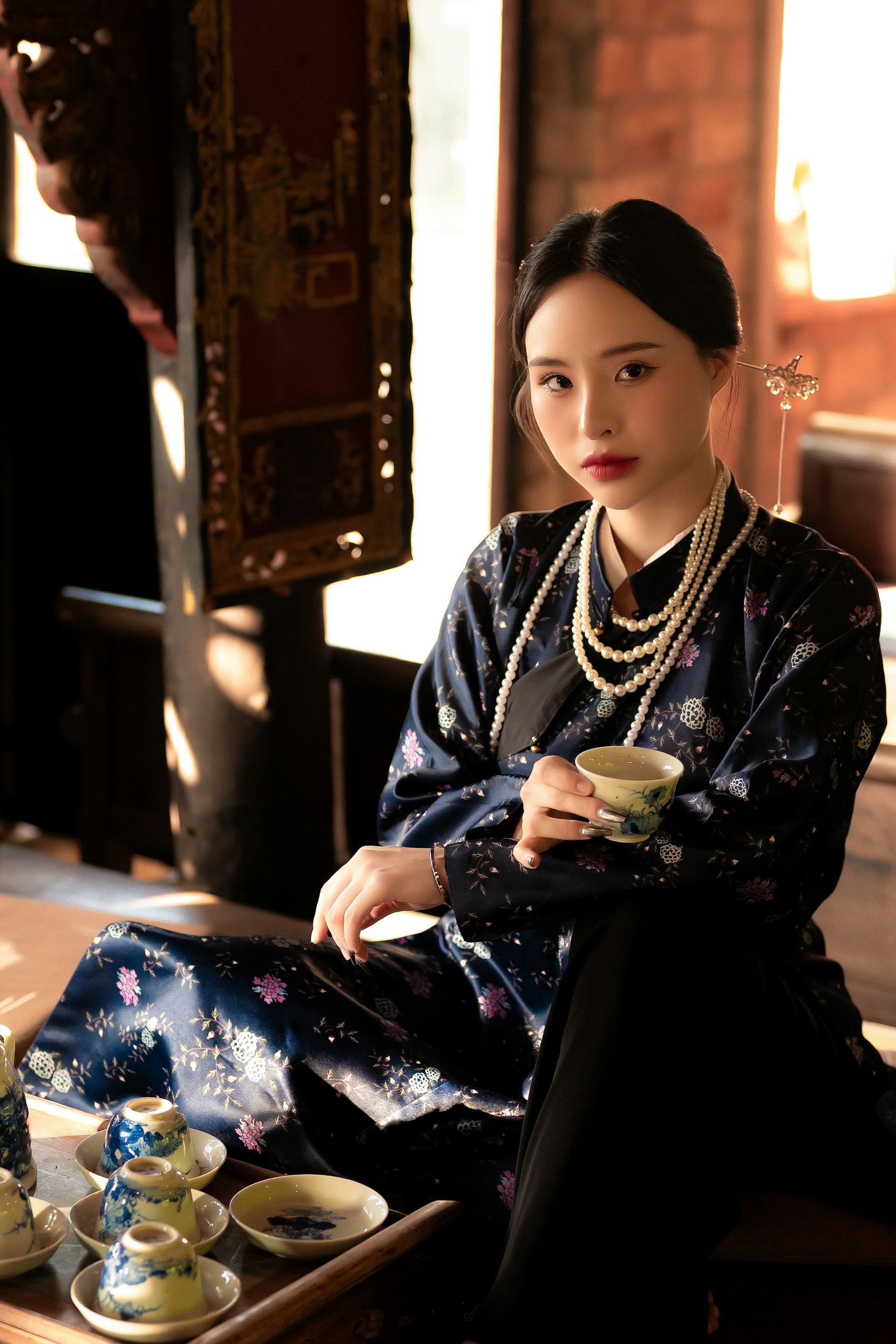 她在古亭前静立,在茶席边端坐,指尖轻握茶杯,眼神里带着几分不被打扰的从容。光影从窗棂间漏进来,落在衣料的花纹上,落在青砖的纹理里,把古宅的静谧与传统服饰的优雅揉进了每一个瞬间,每一帧都像从旧时光里走出来的画面。图片来源:Unsplash
