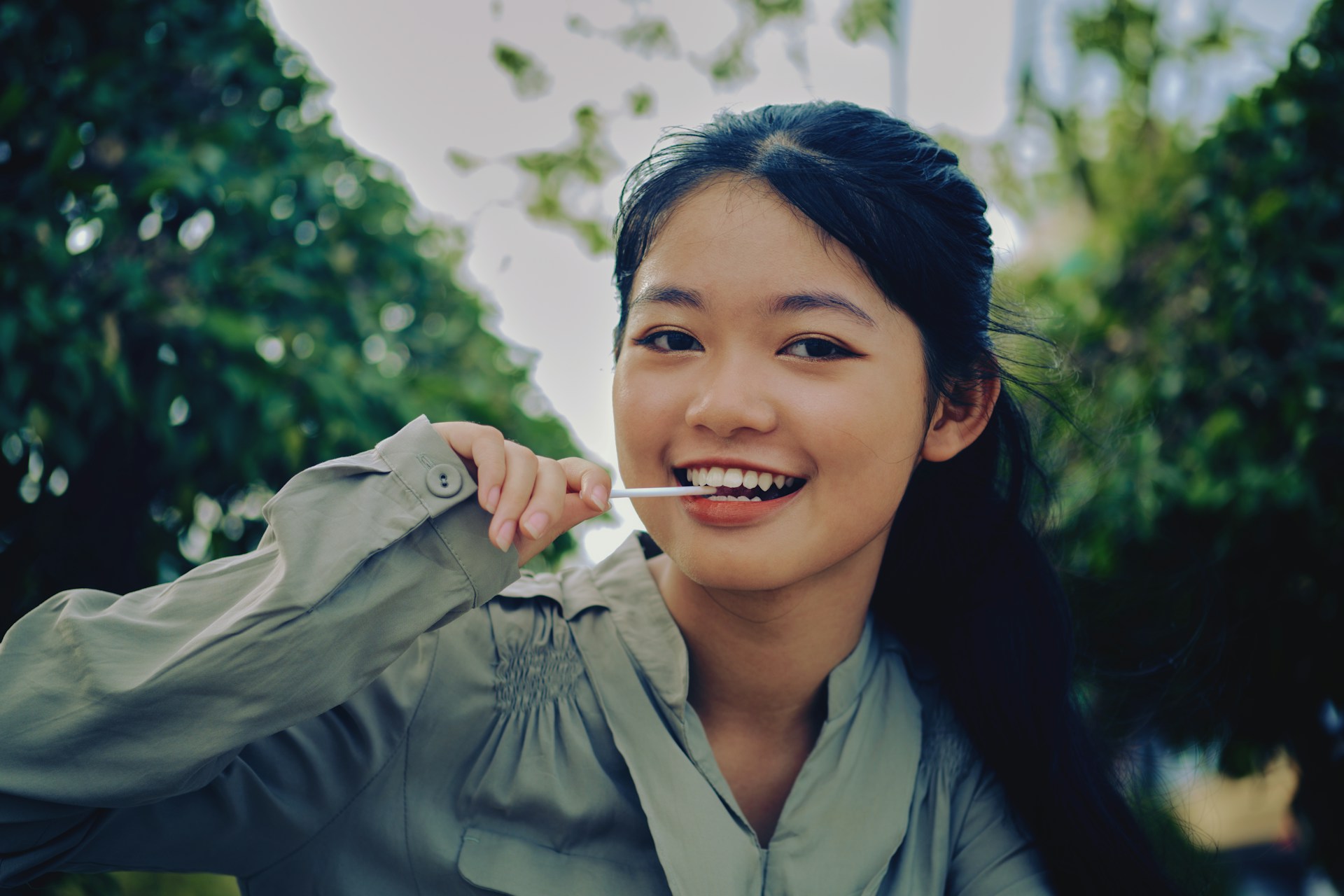 河风带着水汽漫过岸边,把天光揉成温柔的灰调,落在她的衬衫上。宽腰带勾勒出利落线条,发梢被风轻轻吹起,带着几分不设防的随性。她抬手拨弄发丝,或是衔着棒棒糖轻笑,眉眼间的慵懒与灵动,被镜头一一接住。没有浓烈的色彩,只用清浅的灰调与自然光影,把街头的松弛感和少女的鲜活,都定格成了带着旧时光质感的画面。图片来源:Unsplash