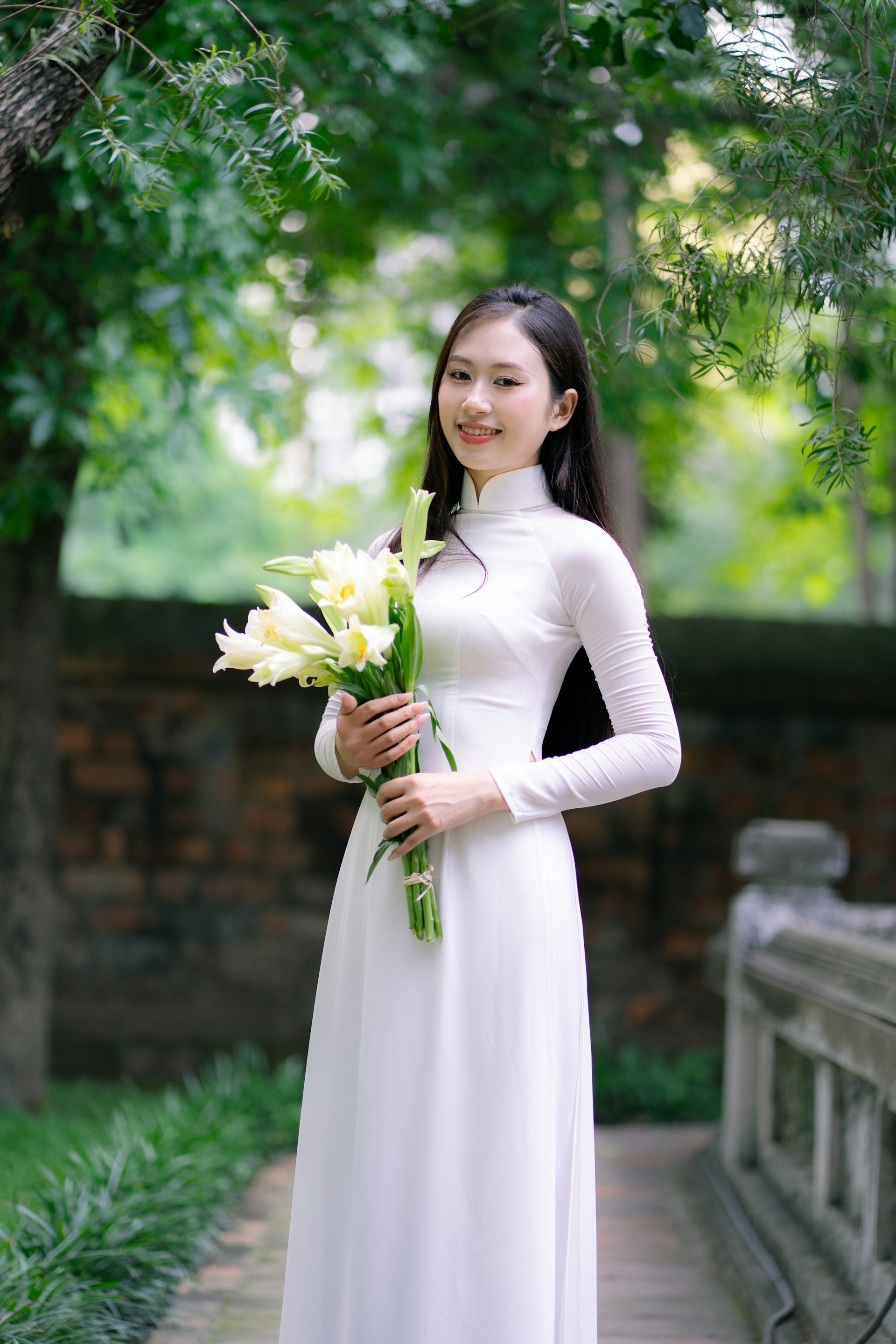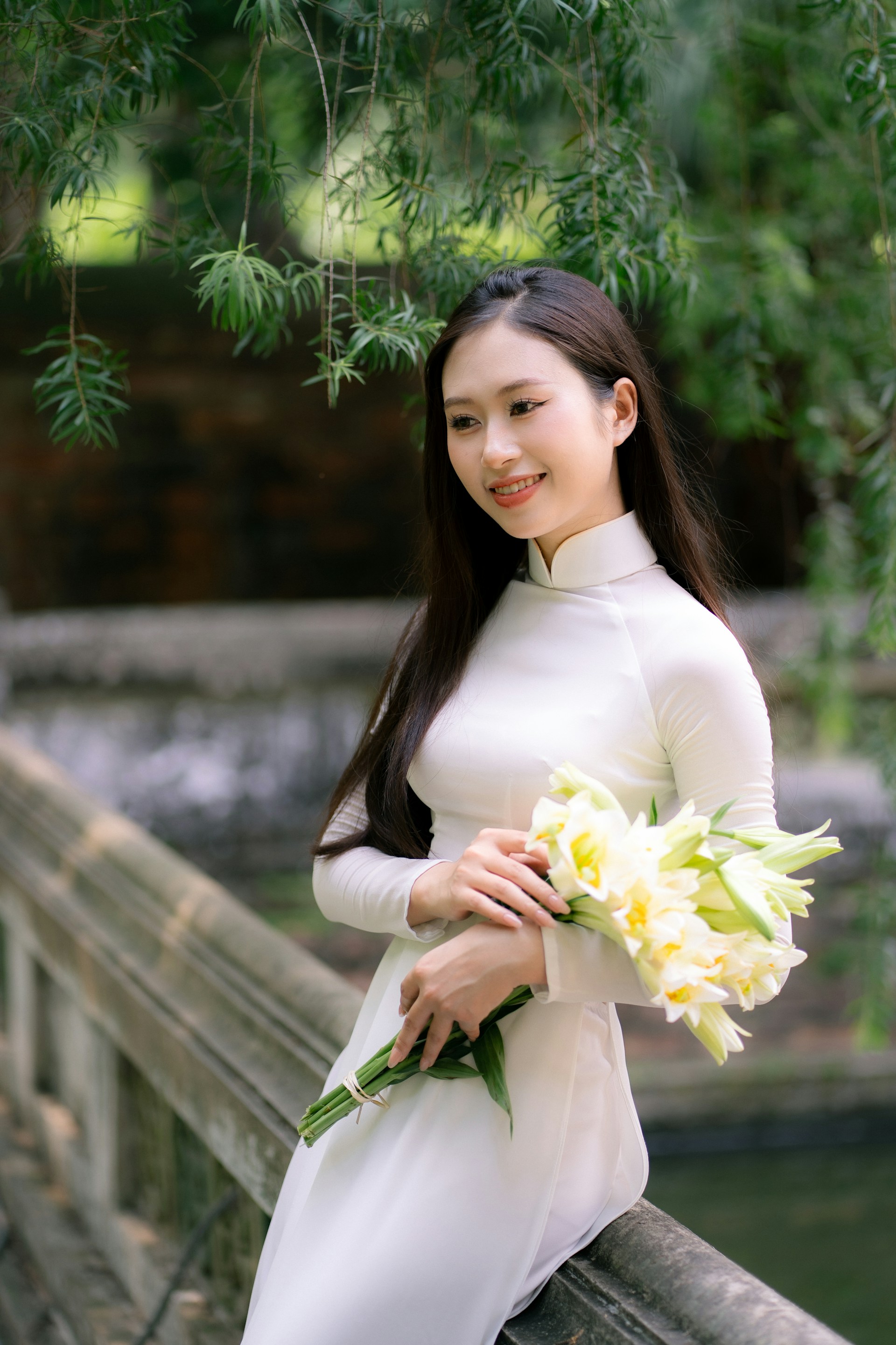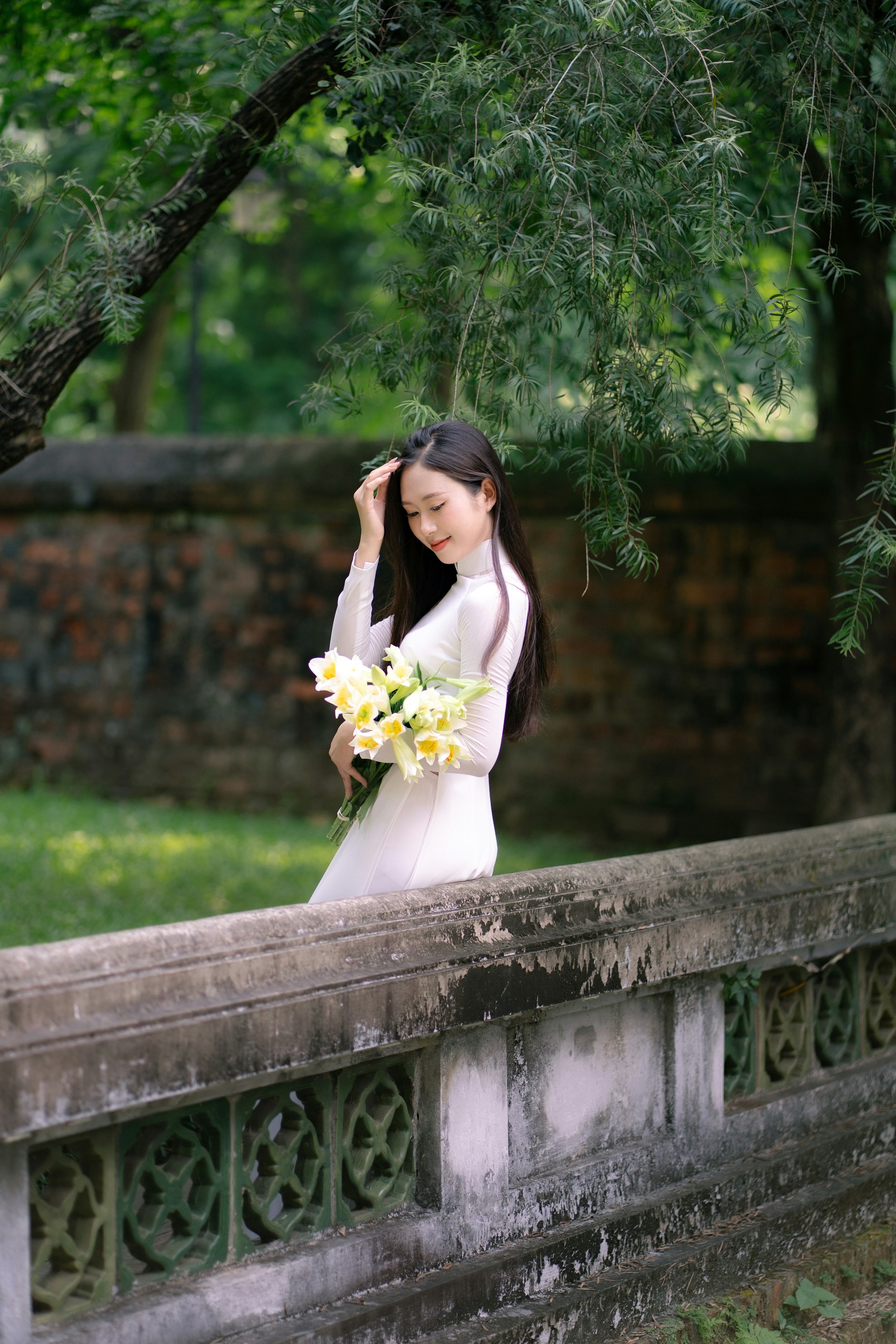 奥黛的线条干净又优雅,高领贴合脖颈,垂坠的裙摆随着步伐轻晃,像一朵在时光里悄然绽放的白百合。她手捧一束盛放的百合,洁白的花瓣与嫩黄的花蕊,和白奥黛的纯净完美相融,眉眼间漾着温柔的笑意,每一个回眸都带着不刻意的雅致✨。图片来源:Unsplash