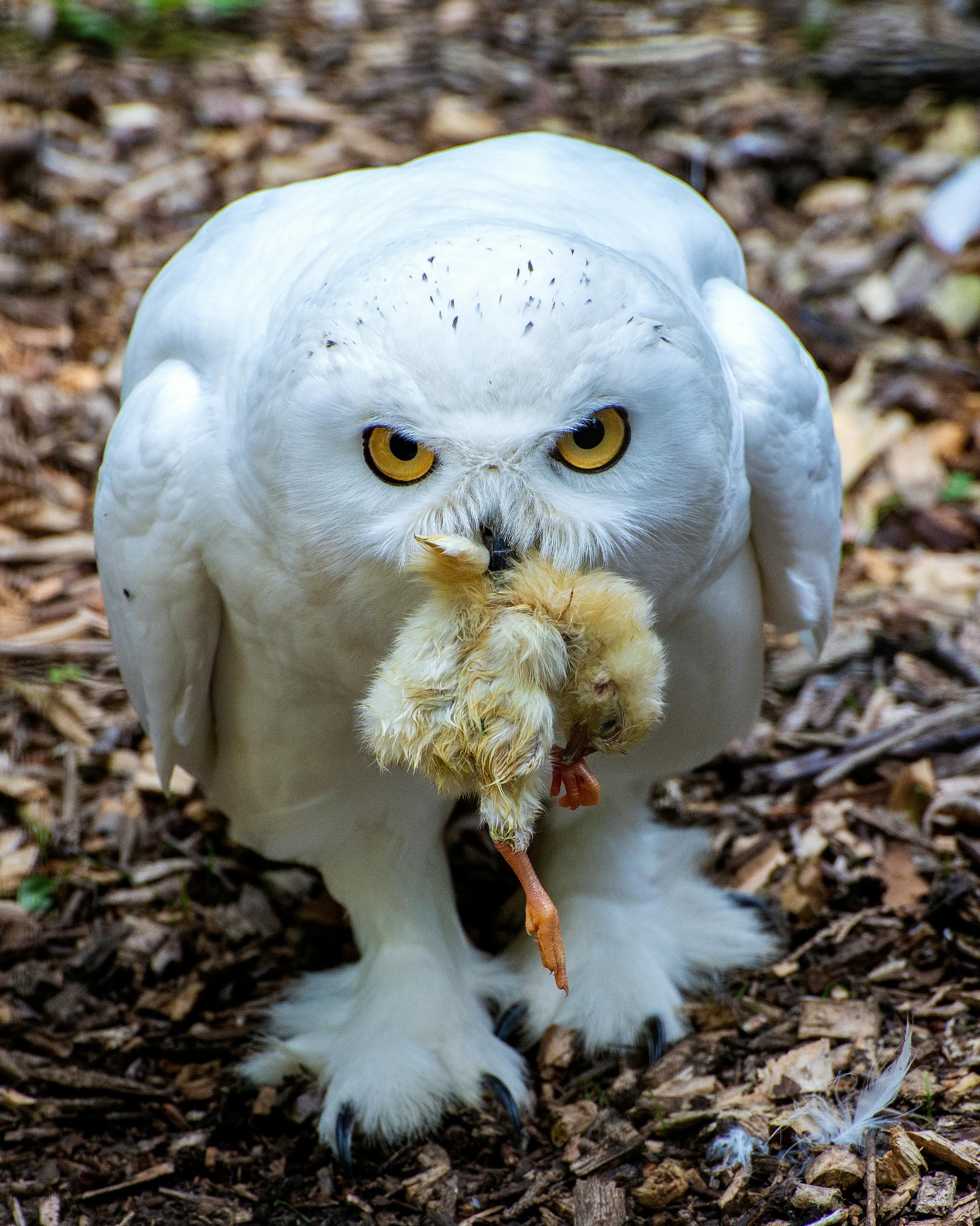 雪鸮的保护意识极强,在繁殖季节,任何靠近巢穴的生物都会遭到它们的猛烈攻击,包括体型庞大的雪雁甚至人类。它们会利用锋利的利爪和巨大的双翼进行俯冲轰炸。有趣的是,有些小鸟(如雪鹀)会故意在雪鸮巢穴附近筑巢,利用雪鸮的威慑力来作为自己的“免费保镖”。