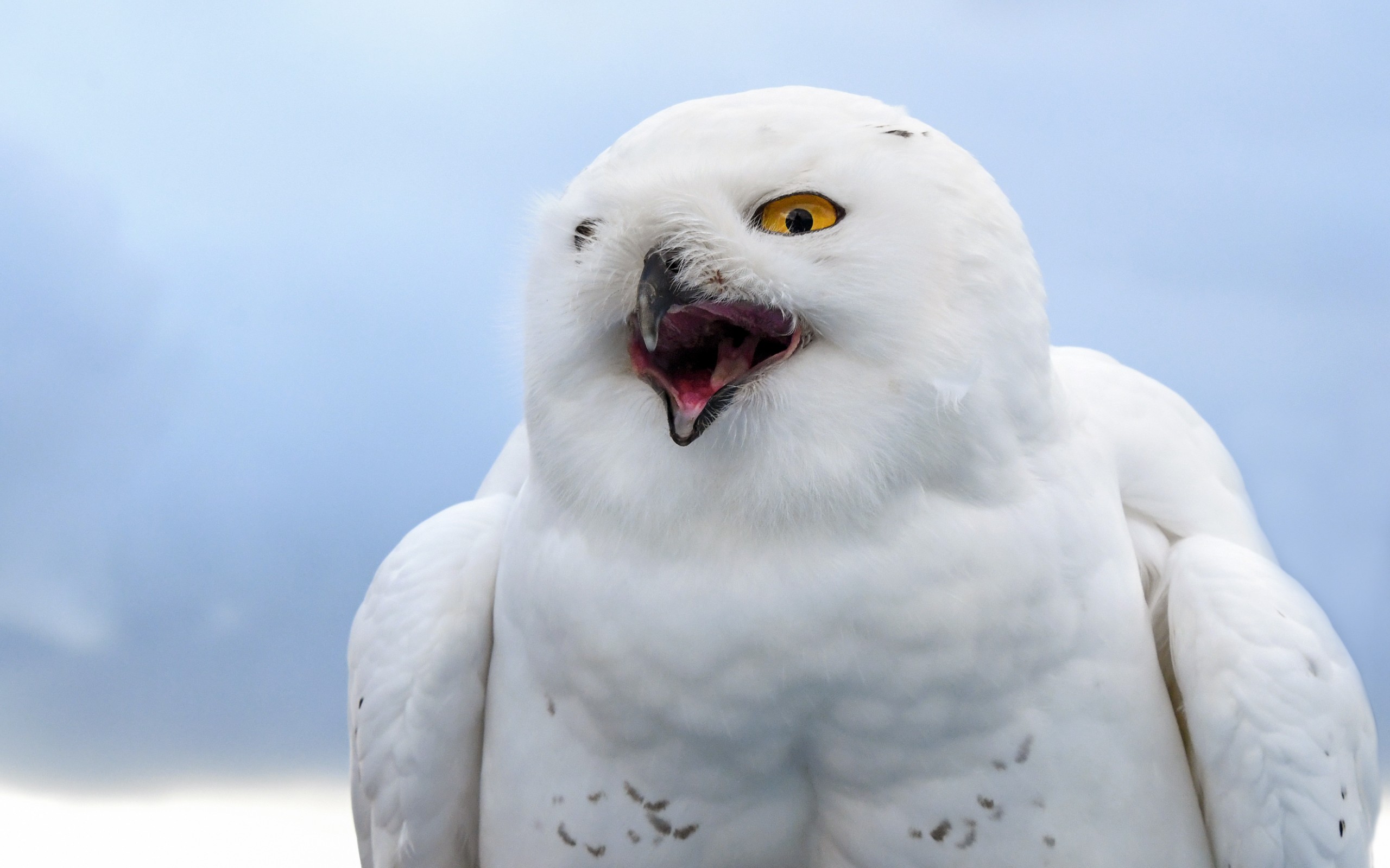 雪鸮是猫头鹰界的“显眼包”,因为它们拥有非常丰富的面部表情。它们时而眯起眼睛像在慈祥地微笑,时而瞪大双眼表现出极度震惊。这种拟人化的神态其实是面部羽毛和肌肉调节的结果。这些表情配合它们偶尔发出的类似“嘎嘎”或嘶吼的叫声,让它们在社交媒体上成为了永恒的表情包素材。