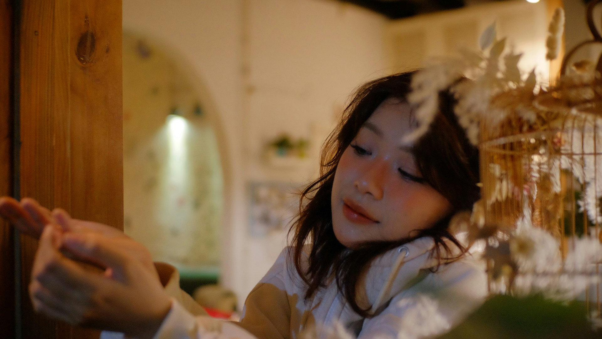 暖黄的灯光漫过角落🌿,木质门框框住了温柔的时光,连空气里都裹着淡淡的暖意。