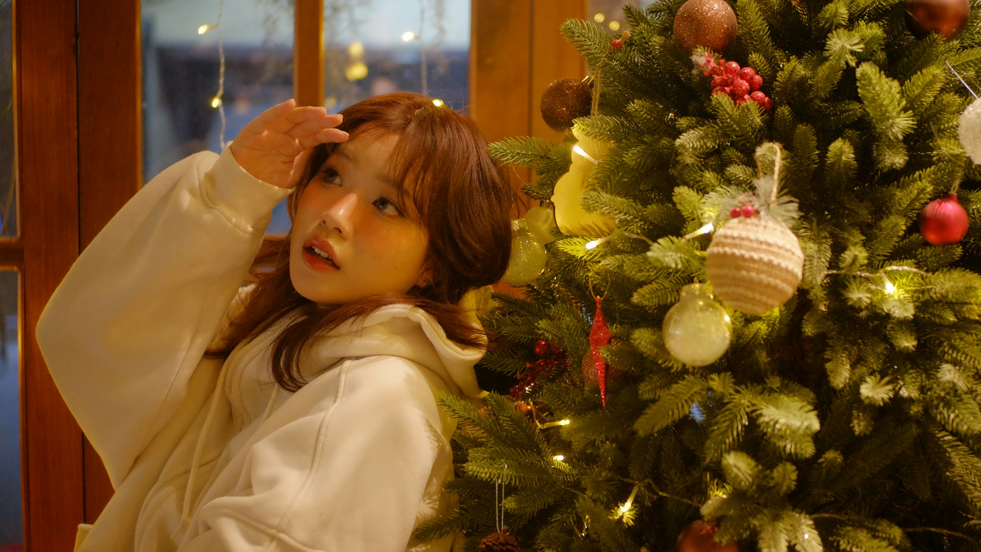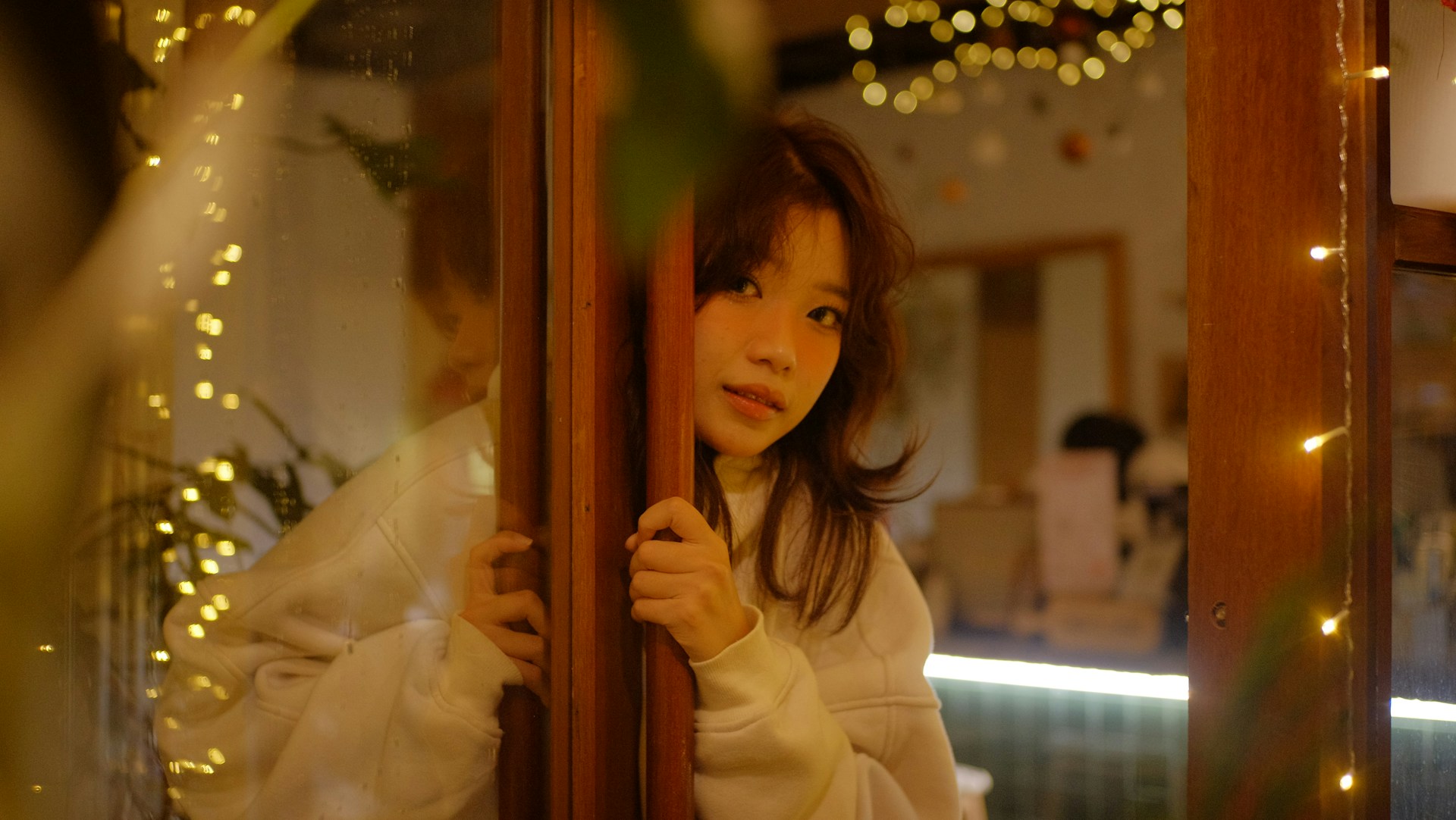 不用刻意营造复杂的氛围,只是靠在门框边轻抬手臂,或是低头整理发丝,在暖光里自在舒展。绿植的绿意衬得画面更柔和,每一个松弛的瞬间,都被暖光温柔包裹。