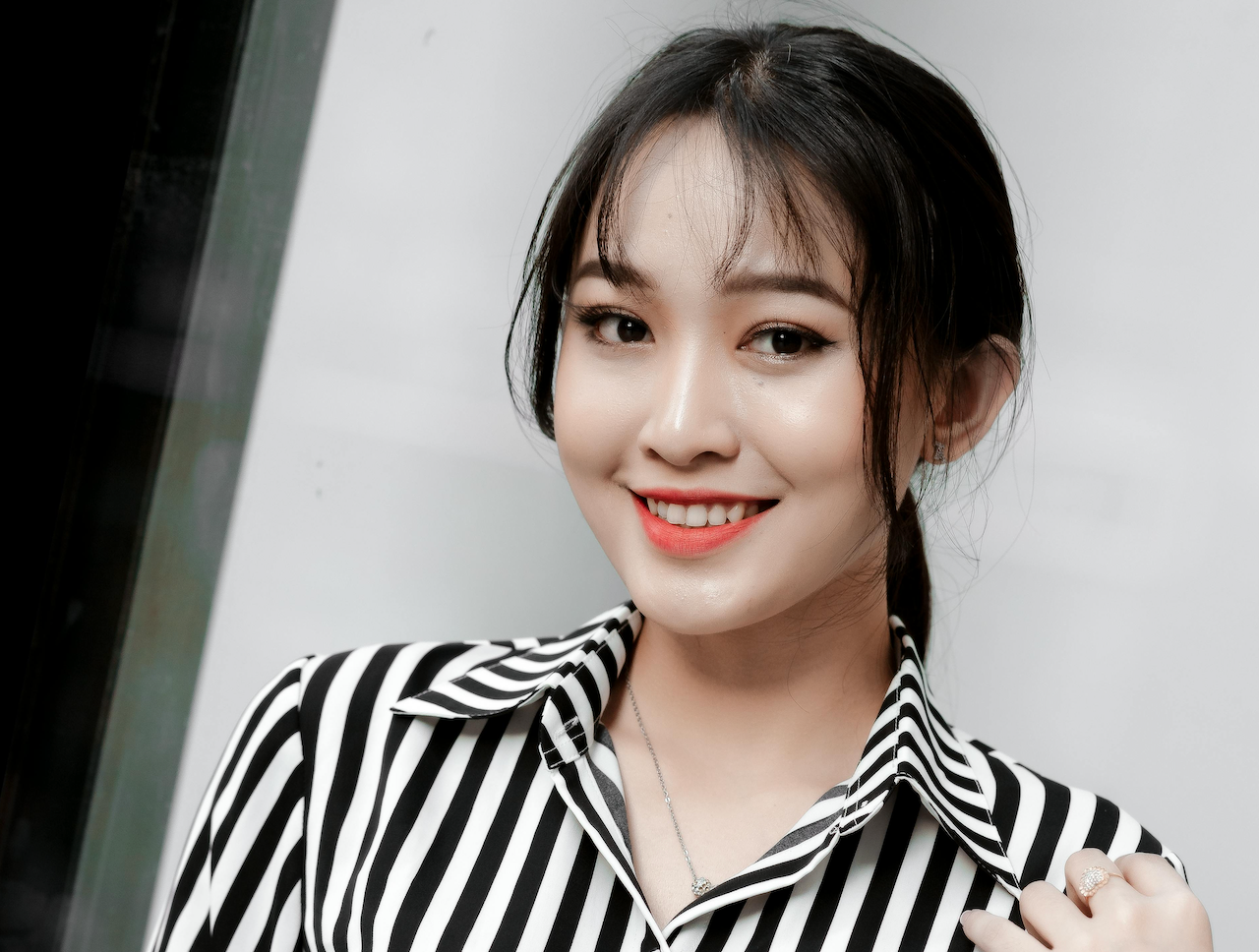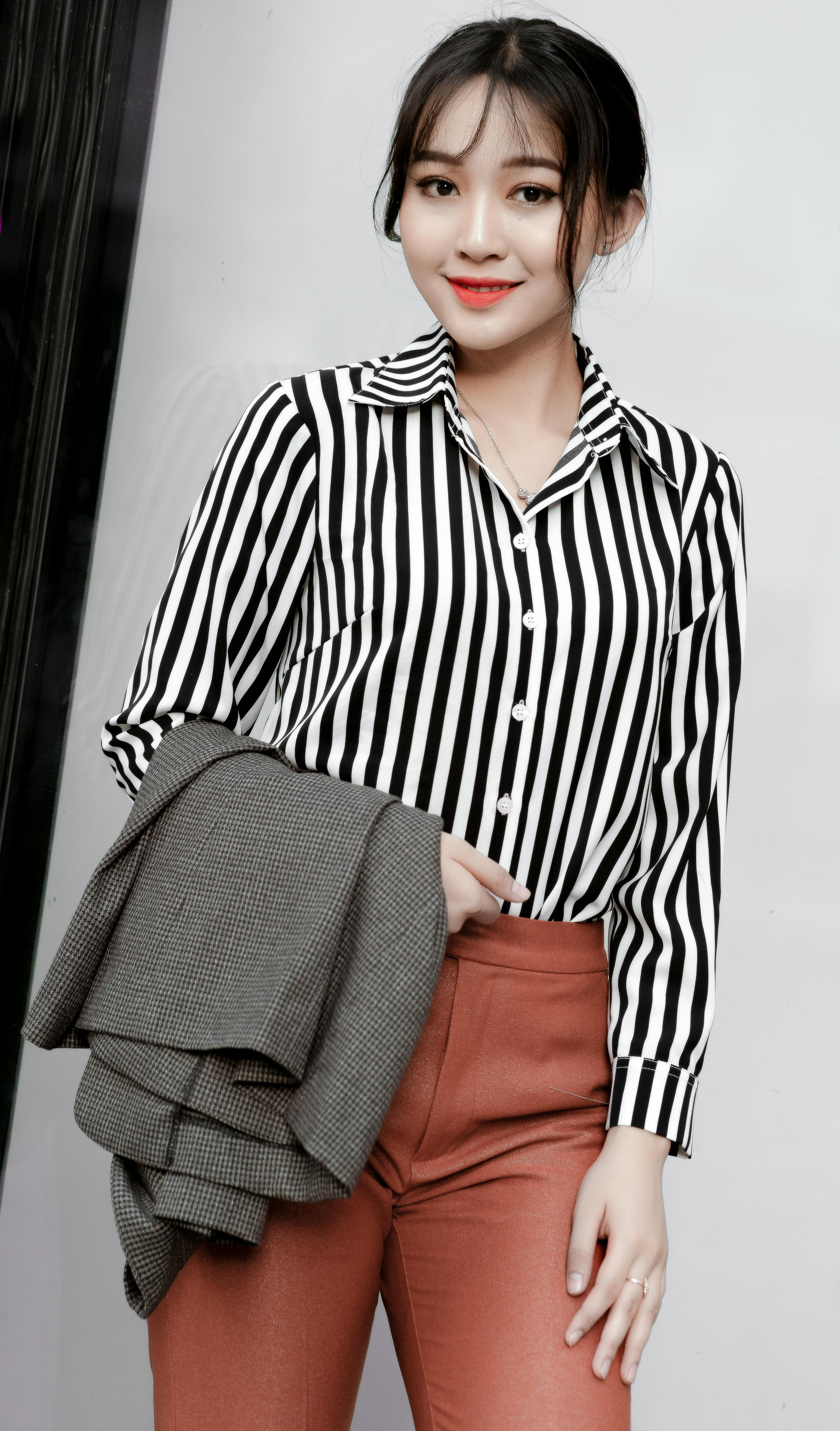 经典黑白条纹衬衫与深色打底随心切换,搭配低束马尾,整身造型简约克制又层次分明。没有多余繁杂的装饰,只用利落线条与沉稳配色,诠释不动声色的高级感。