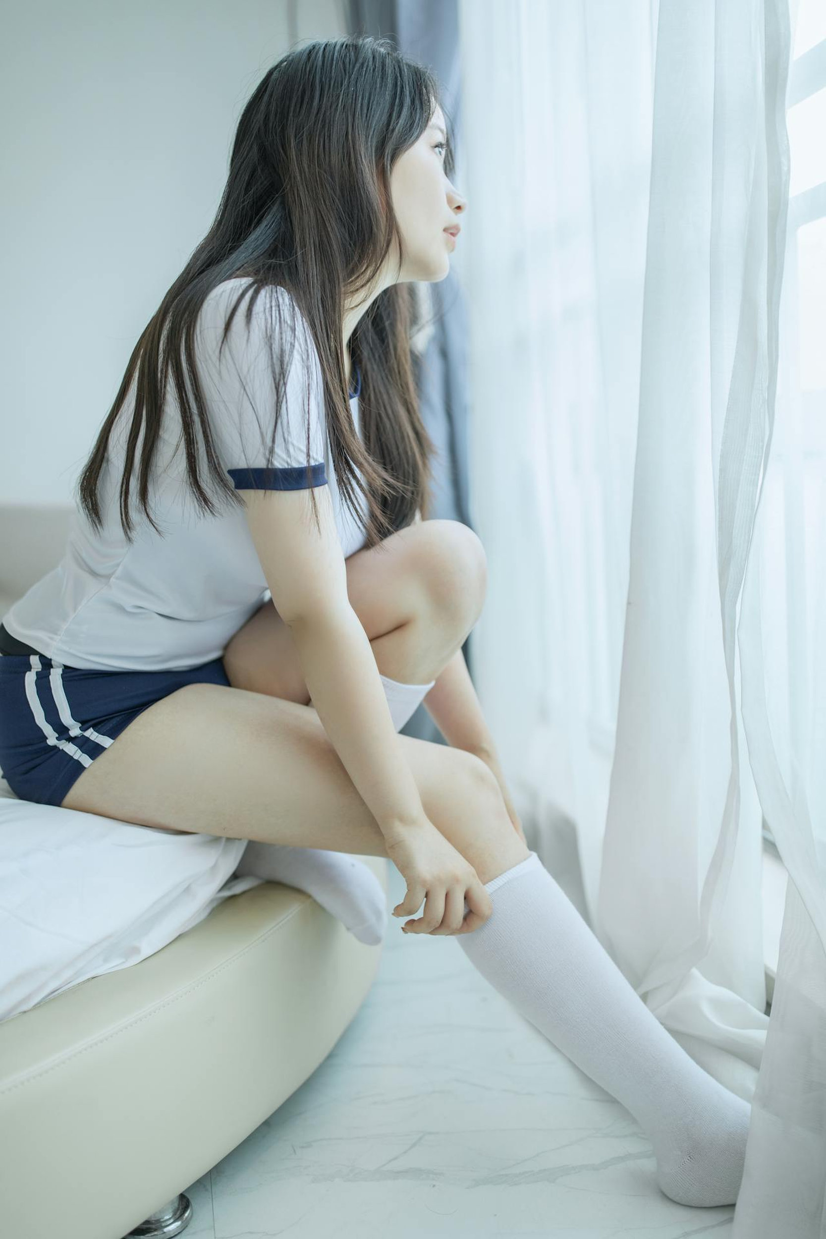 白纱透进来的柔光、干净的房间、简单的穿搭,把少女的元气与温柔,都定格在了这组充满生活感的私房大片里。