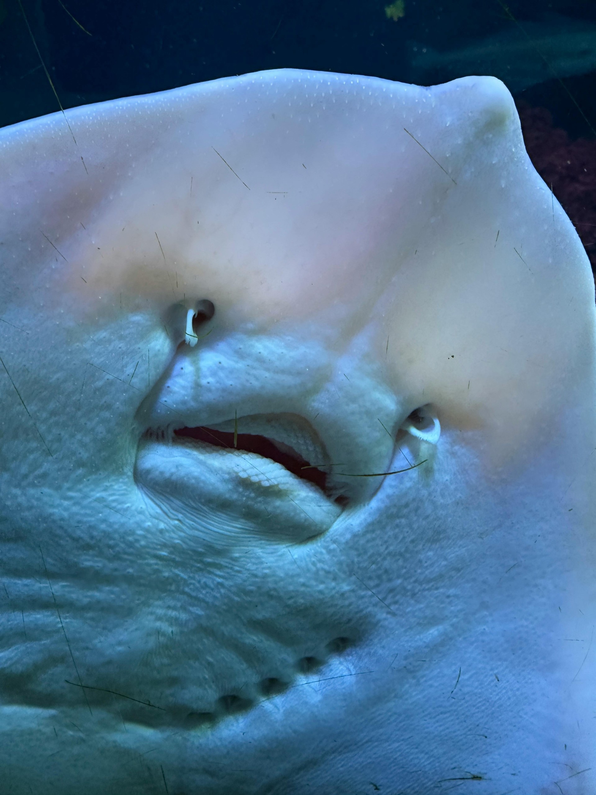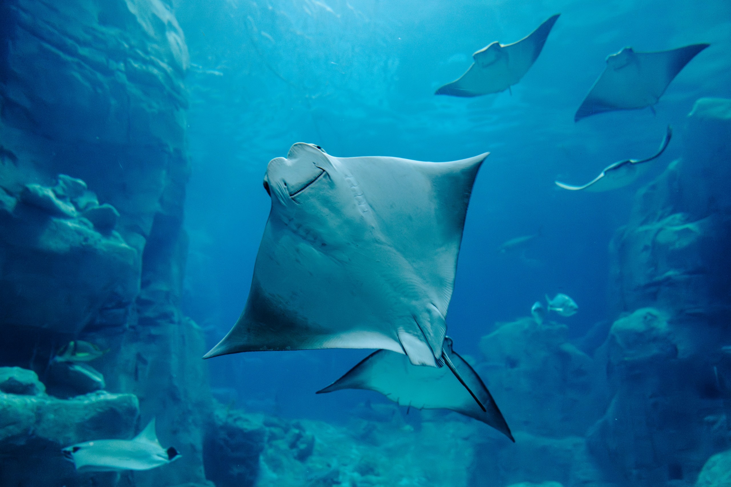 很多人会把蝠鲼和刺鳐(Stingray)混淆,担心它们尾巴上的毒刺。但事实上,蝠鲼是完全没有毒刺的,它们对人类没有任何攻击性。它们甚至连牙齿都退化到了几乎看不见的地步,因为它们只对微小的浮游生物感兴趣。这种庞大的身躯与极度温顺的性格形成了一种奇妙的反差,让它们成为了海洋中名副其实的“温柔巨人”。