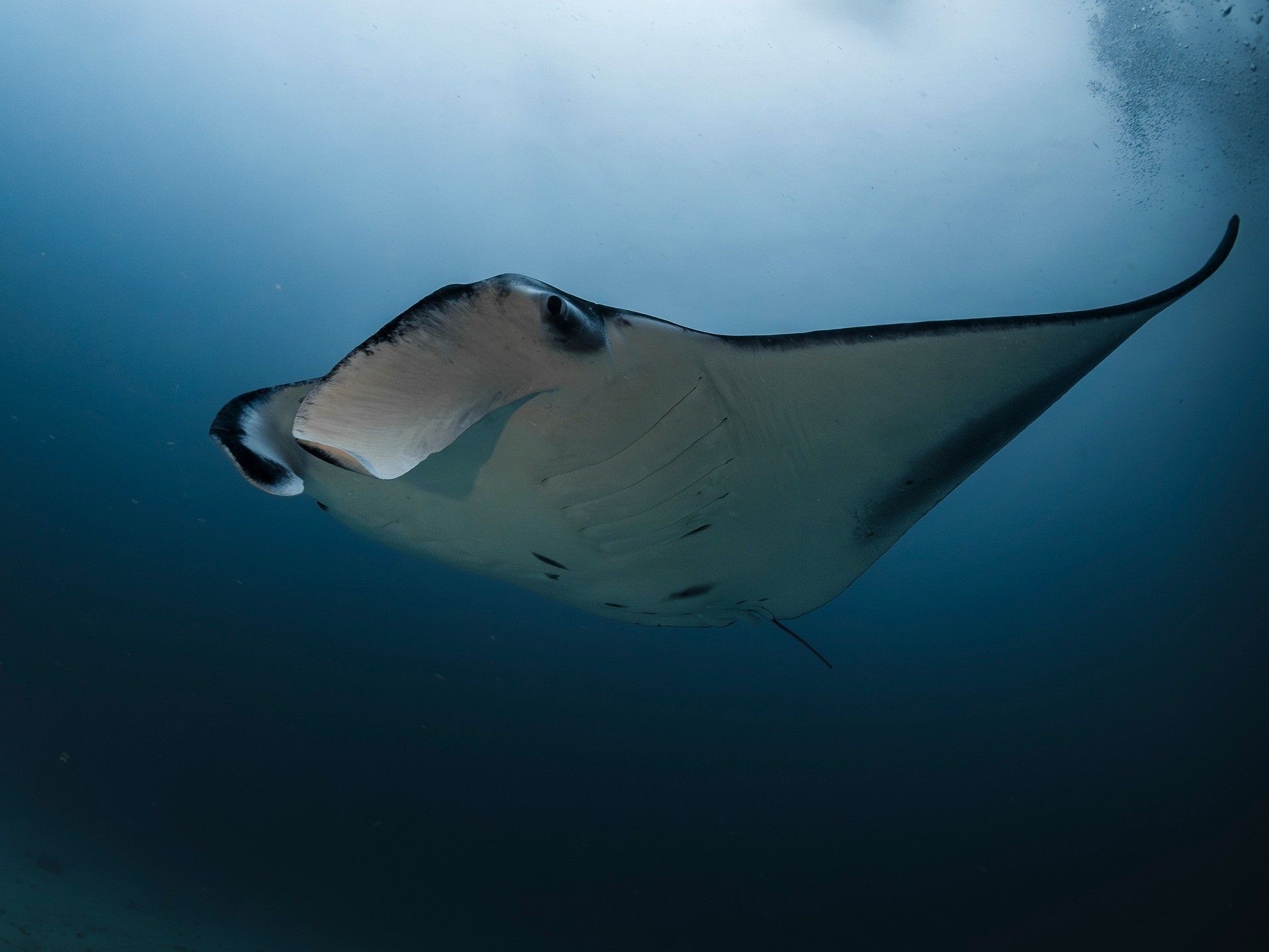 虽然体型庞大,但蝠鲼是典型的“吃货”。它们每天要消耗相当于自身体重 2% 左右的食物。为了摄取足够的营养,它们经常在洋流汇聚、浮游生物密集的地区进行“翻滚式捕食”——它们会在水中不断做 360 度的后空翻,以此在小范围内循环过滤尽可能多的海水。这种捕食动作不仅实用,而且看起来就像是一场精心编排的水下芭蕾。