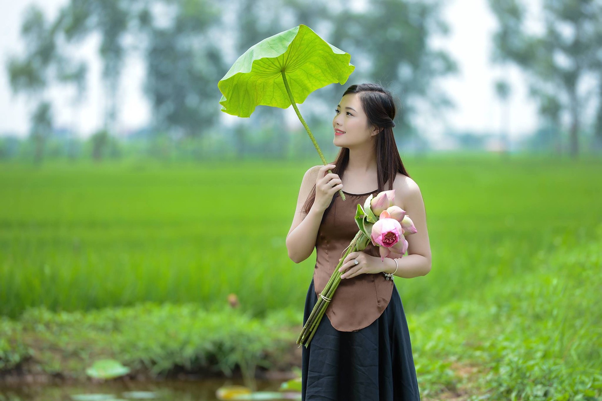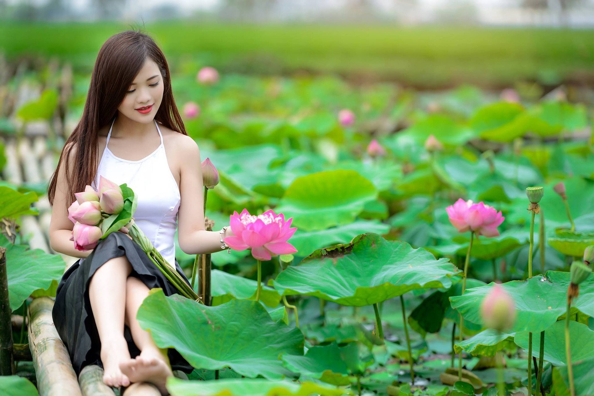 有的轻嗅荷香,指尖抚过花瓣;有的端坐船头,任由荷风拂过裙角;有的把荷叶当成小伞,在绿意里扬起温柔的眉眼。白裙与粉荷相映,绿波与光影交织,没有浓烈的色彩,却满是清透又治愈的氛围感。图片来源:pixabay