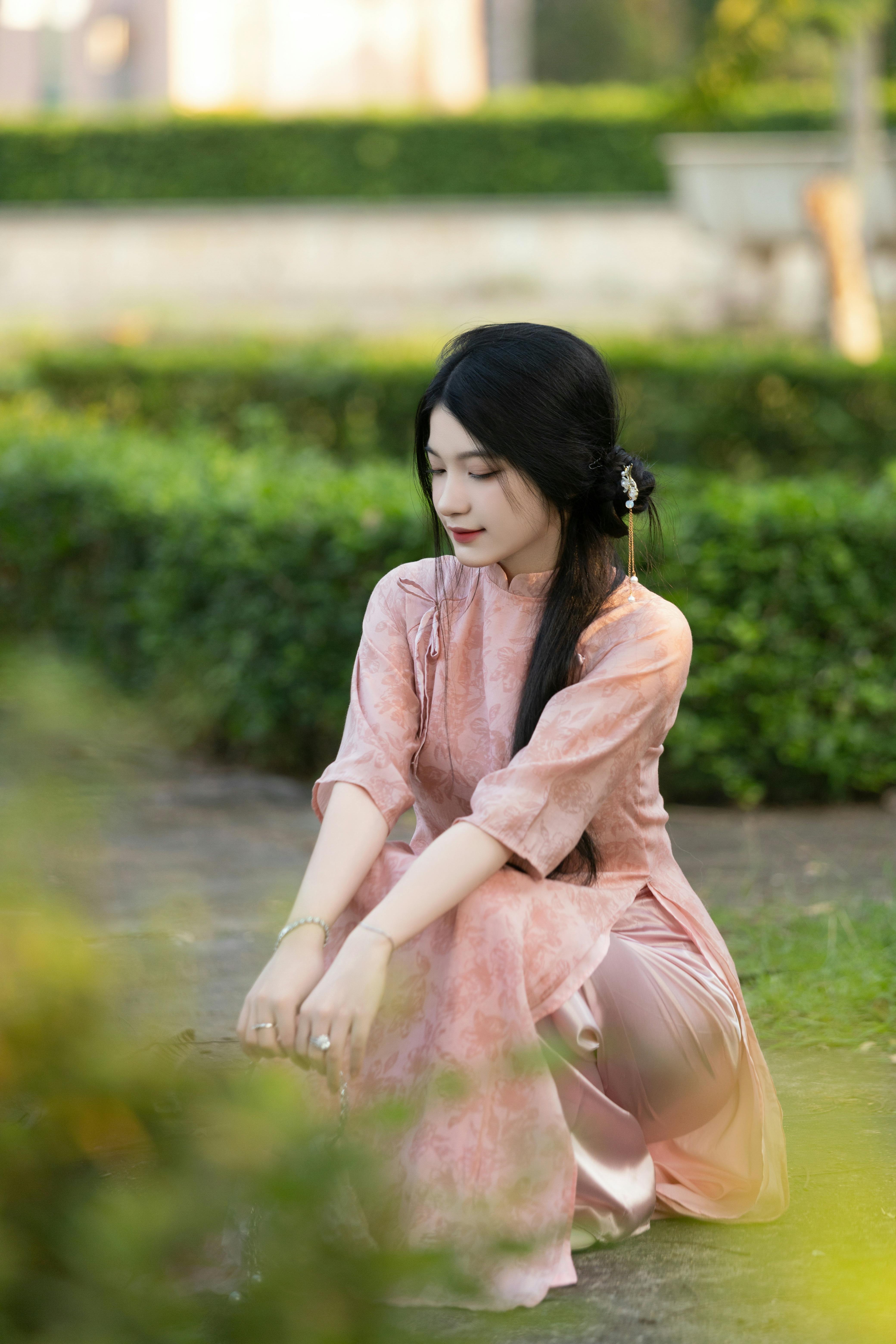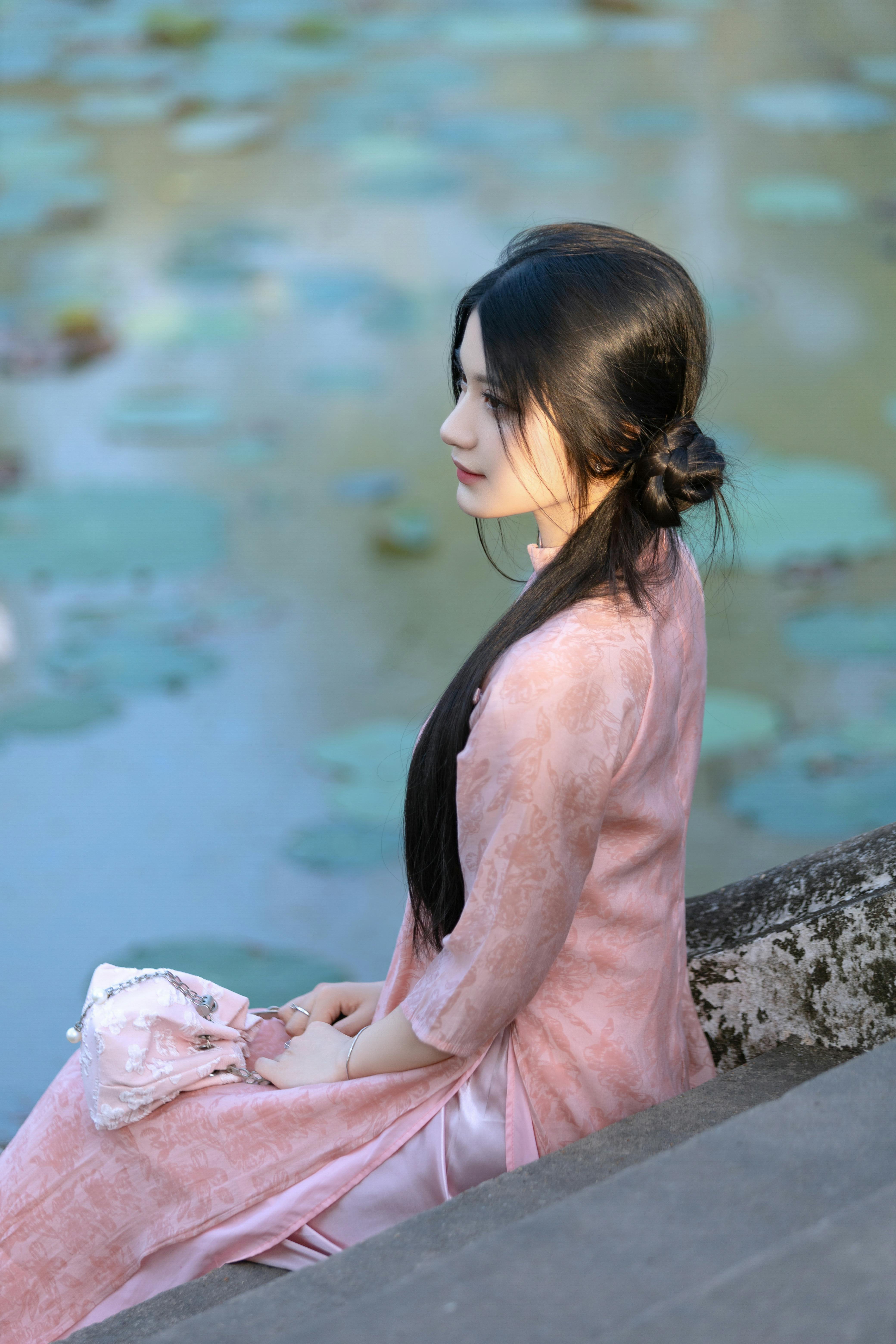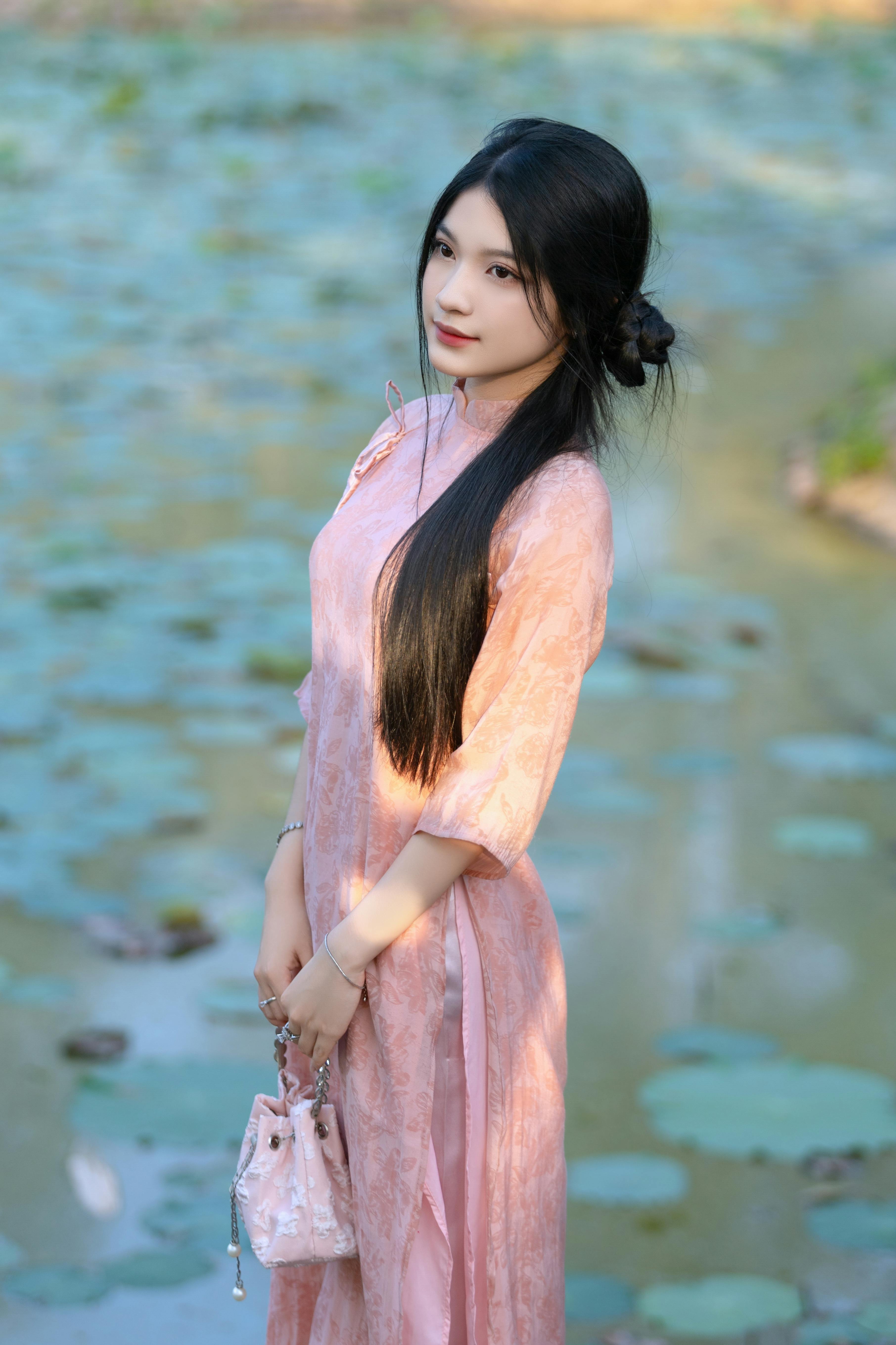 🌸 当柔粉的奥黛遇上荷塘与绿意,东方的温婉气质就此被镜头定格。 垂顺的长发、素雅的发饰,还有身上那件带着温婉气质的粉调奥黛,每一处细节都透着从容与雅致。或蹲在草坪边浅笑,或站在荷塘边抬眸,光影落在衣料上,晕开一层温柔的光泽,把夏日的清新与东方的温婉完美融合。