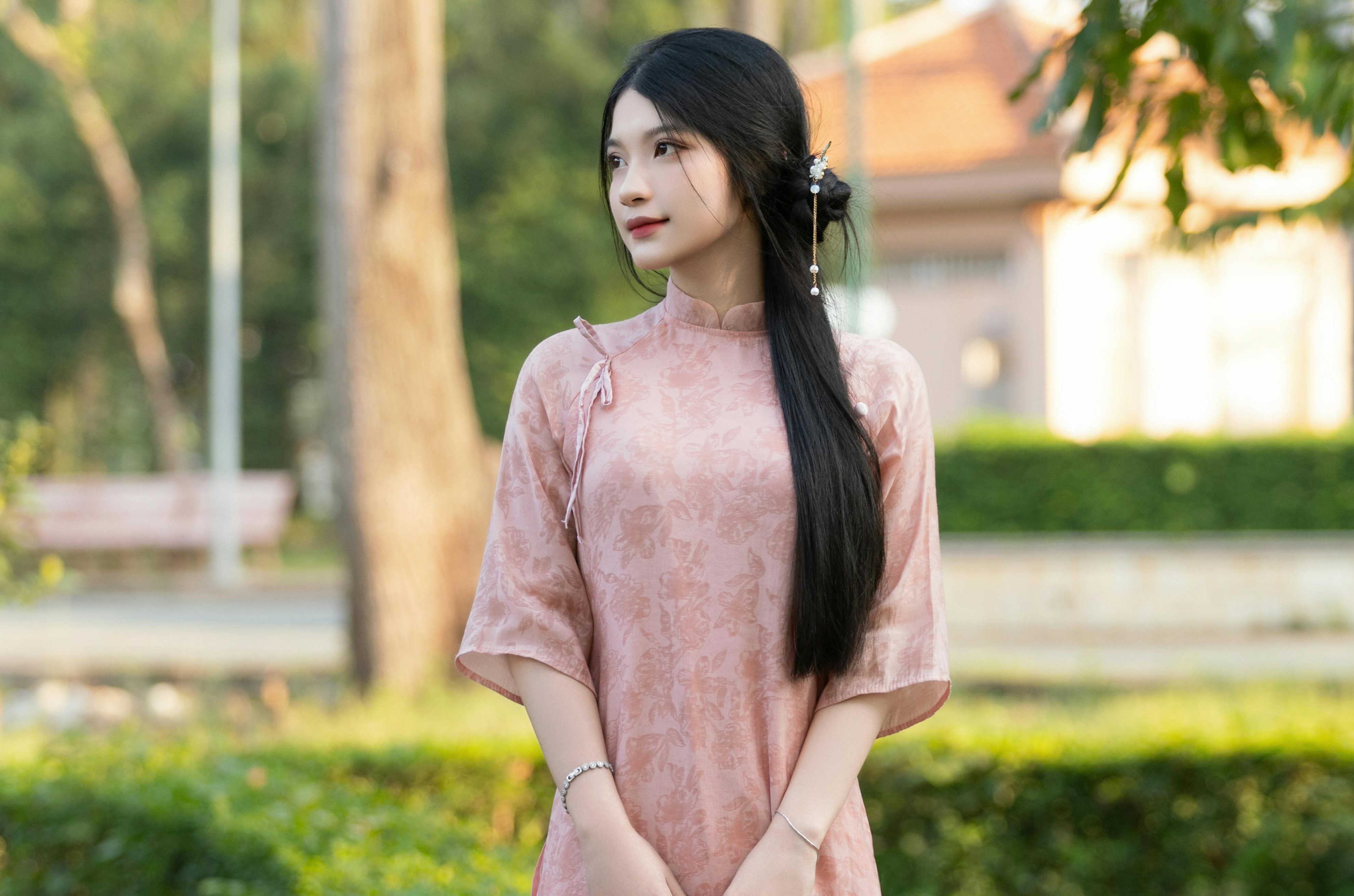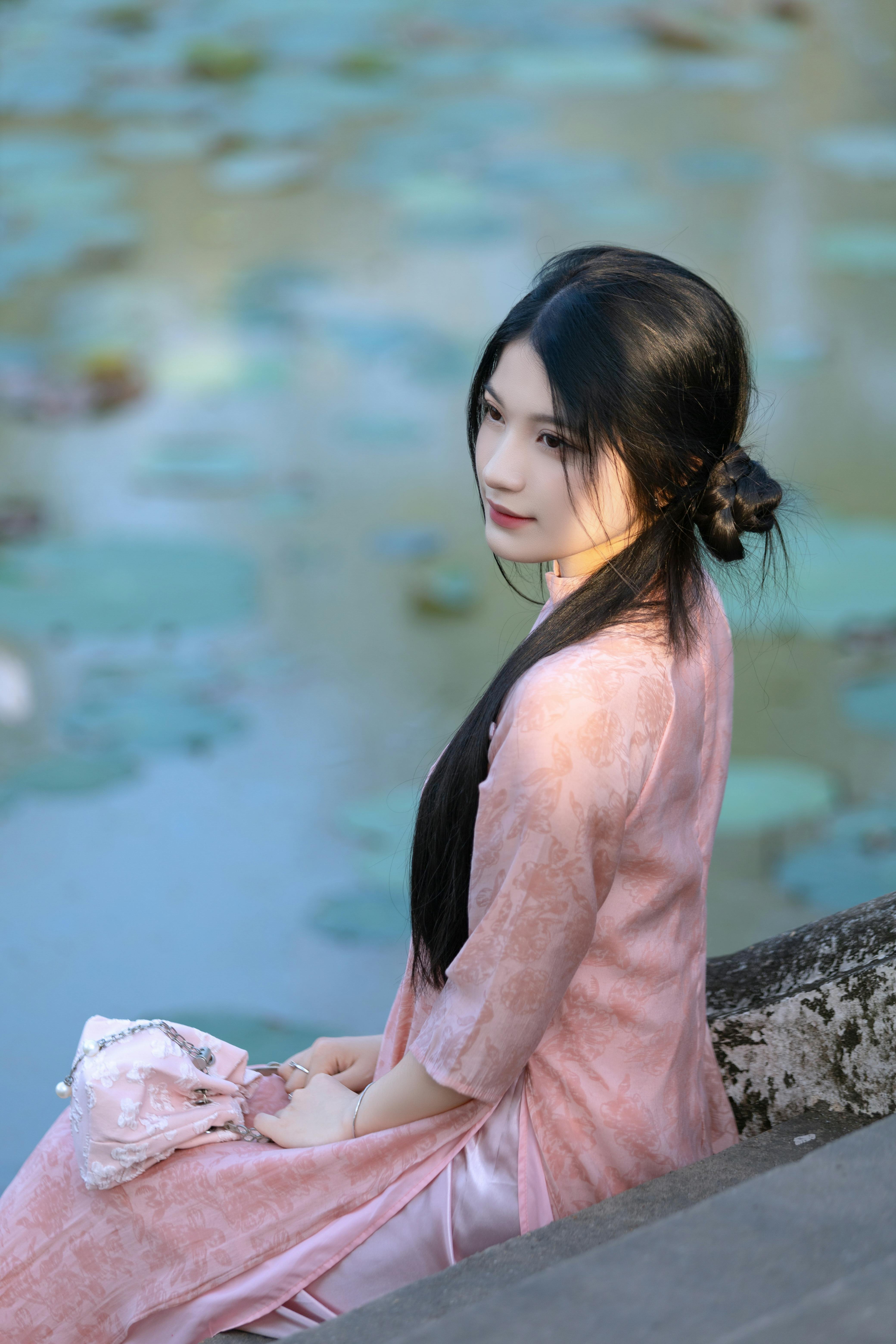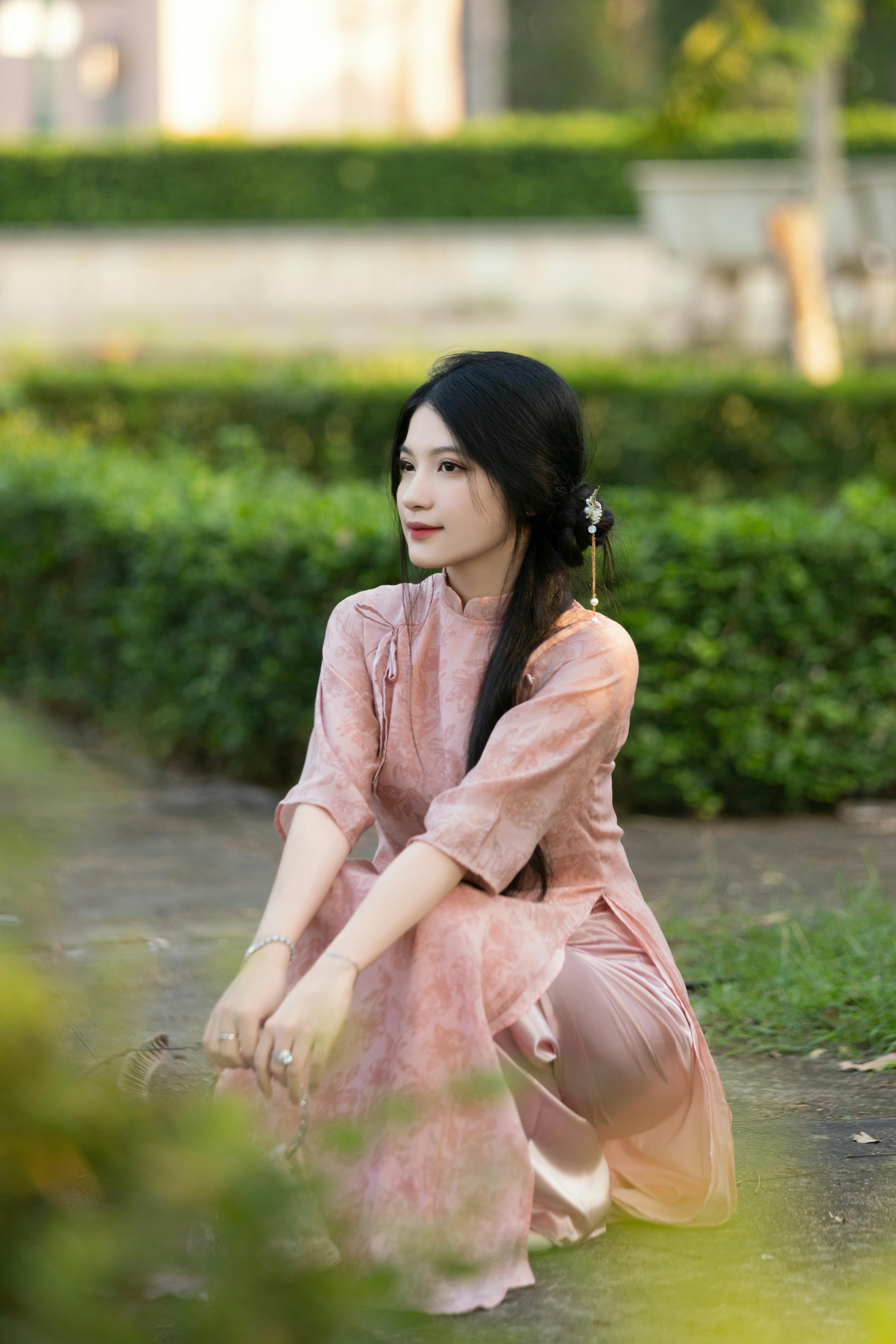 🌸 当柔粉的奥黛遇上荷塘与绿意,东方的温婉气质就此被镜头定格。 垂顺的长发、素雅的发饰,还有身上那件带着温婉气质的粉调奥黛,每一处细节都透着从容与雅致。或蹲在草坪边浅笑,或站在荷塘边抬眸,光影落在衣料上,晕开一层温柔的光泽,把夏日的清新与东方的温婉完美融合。