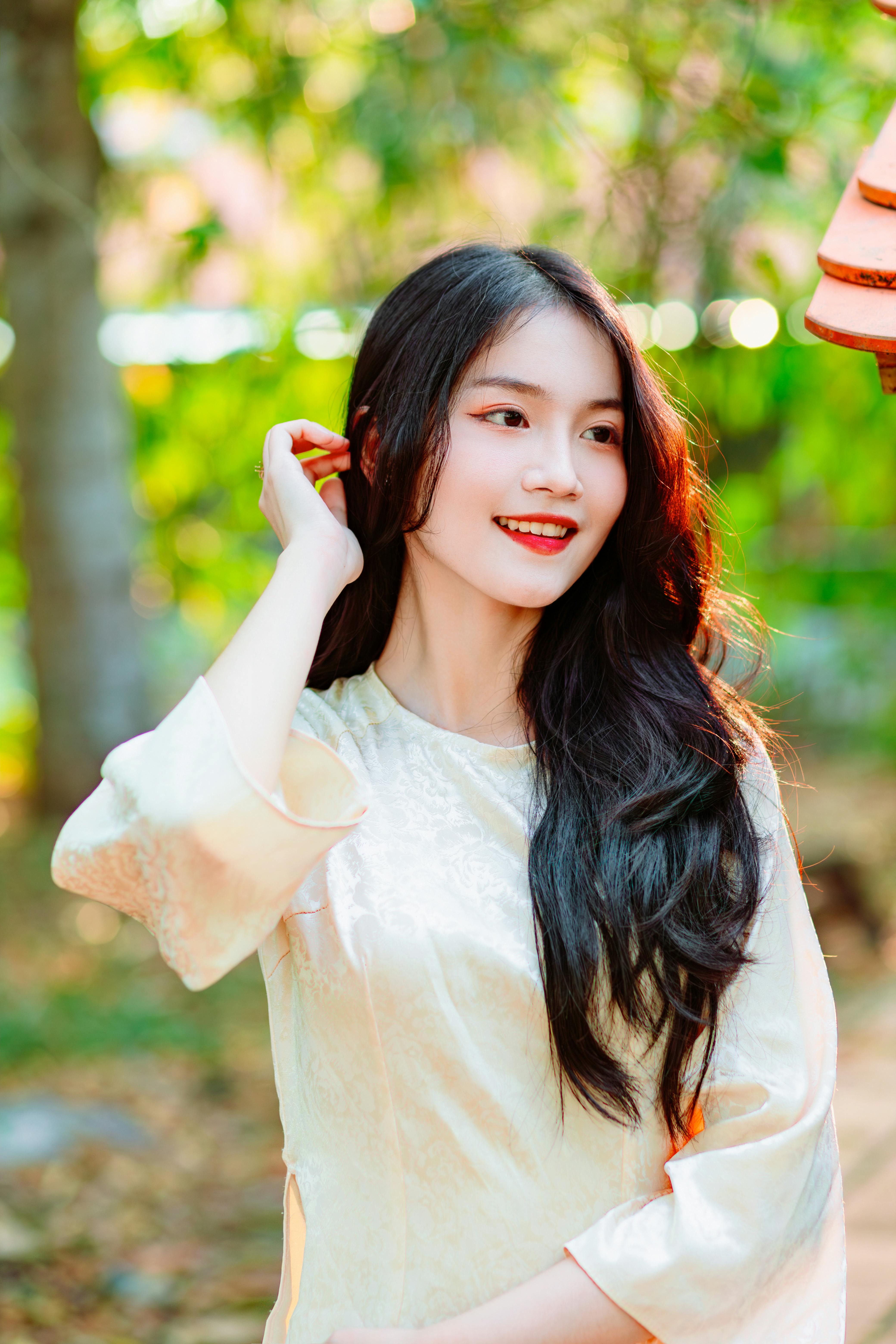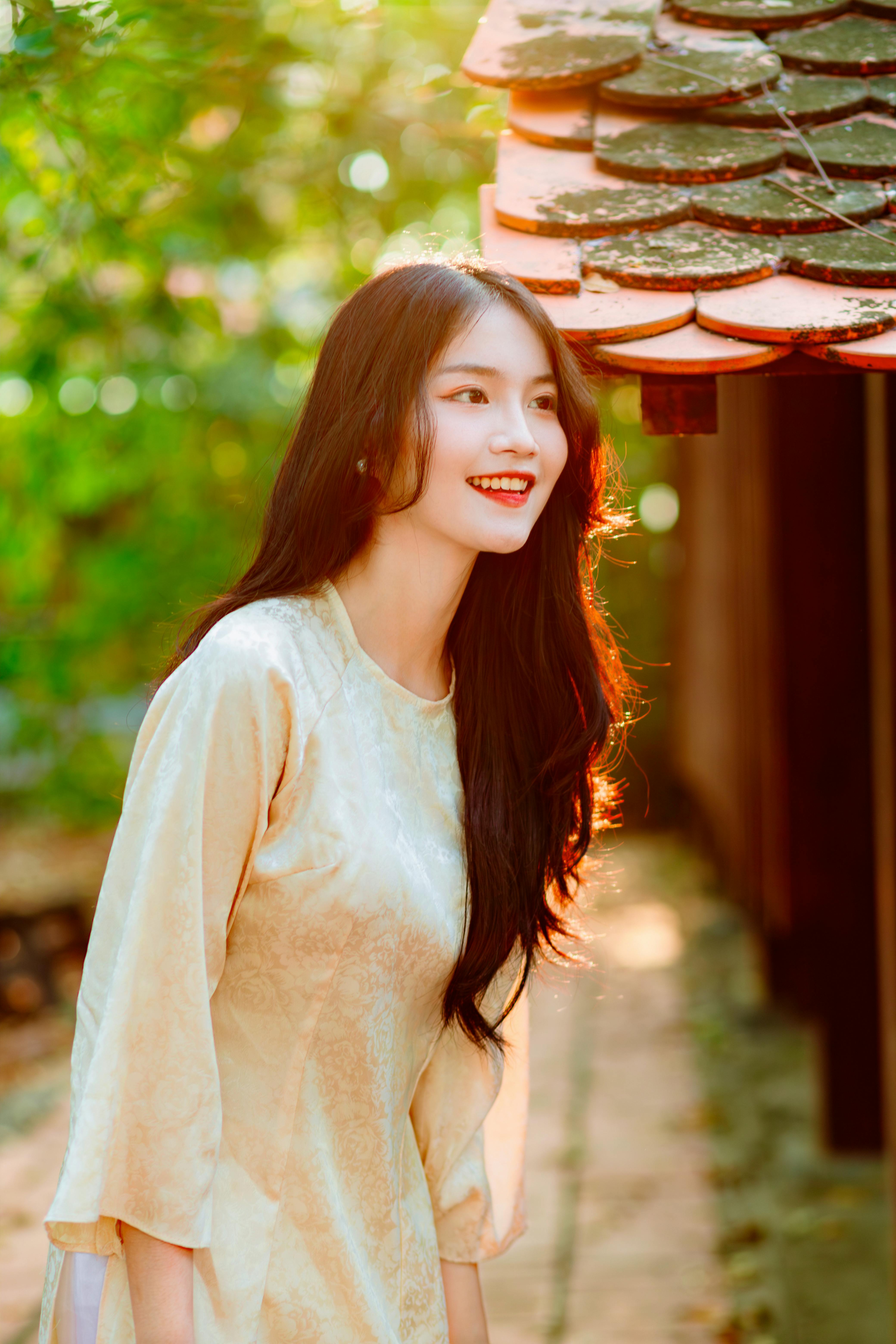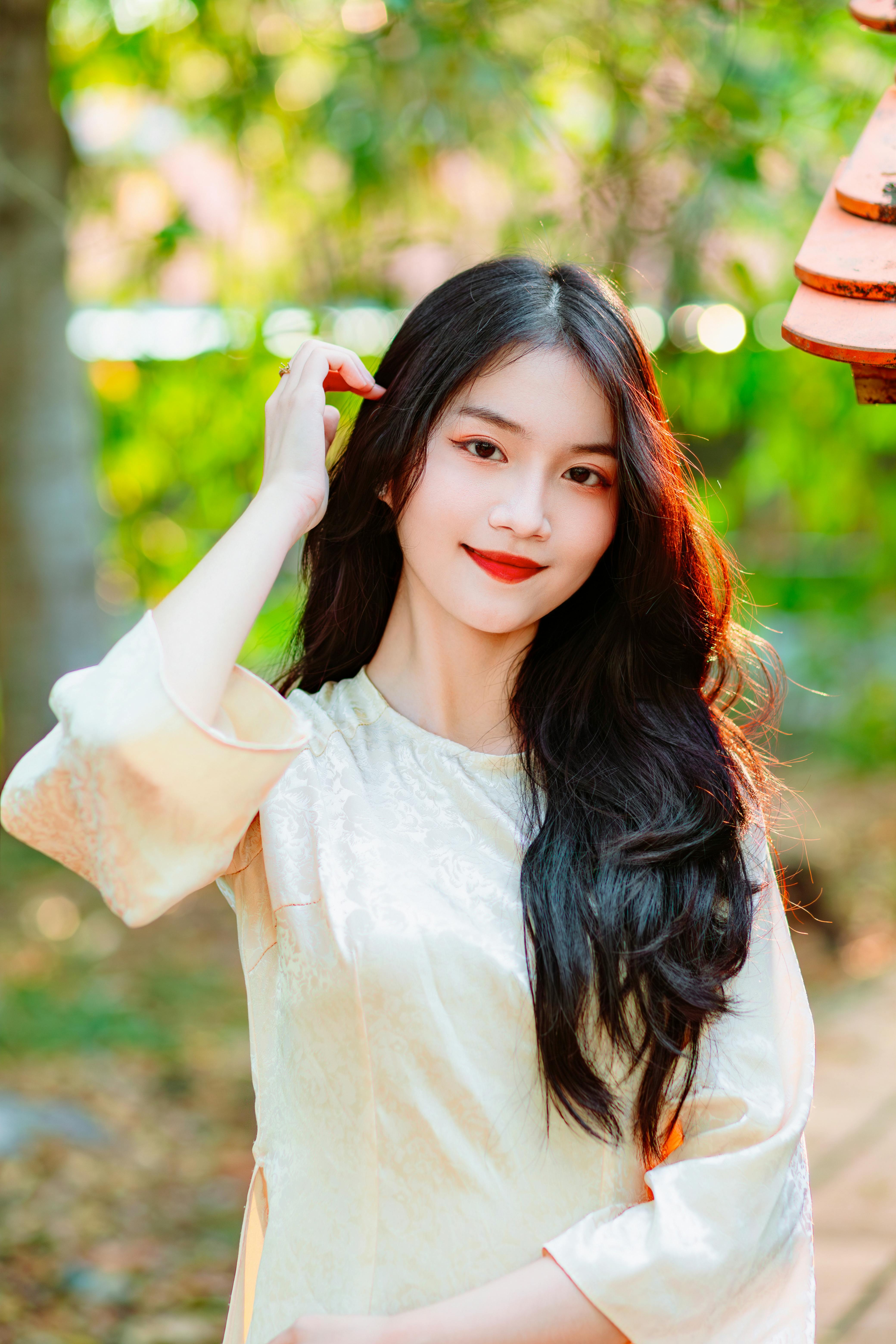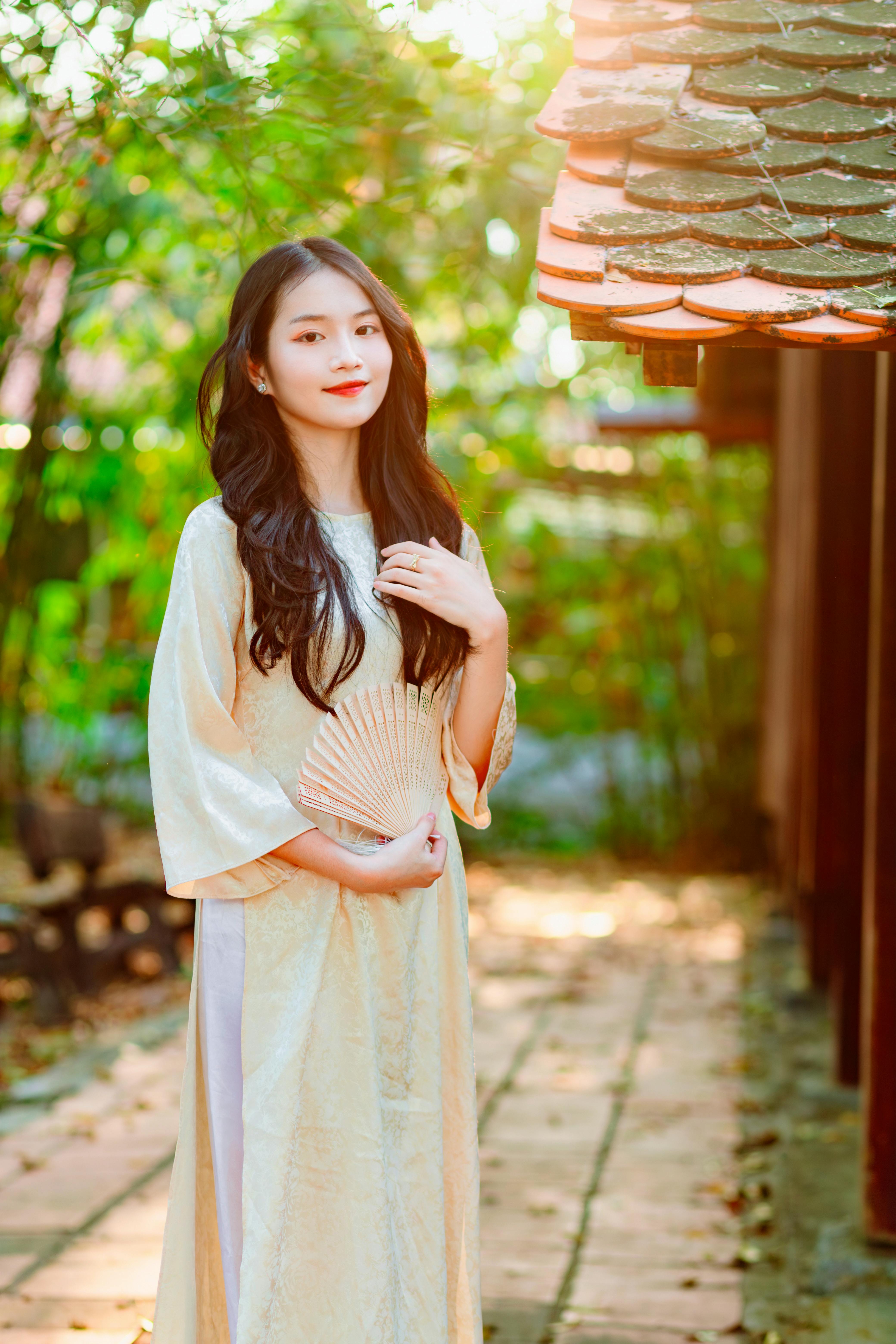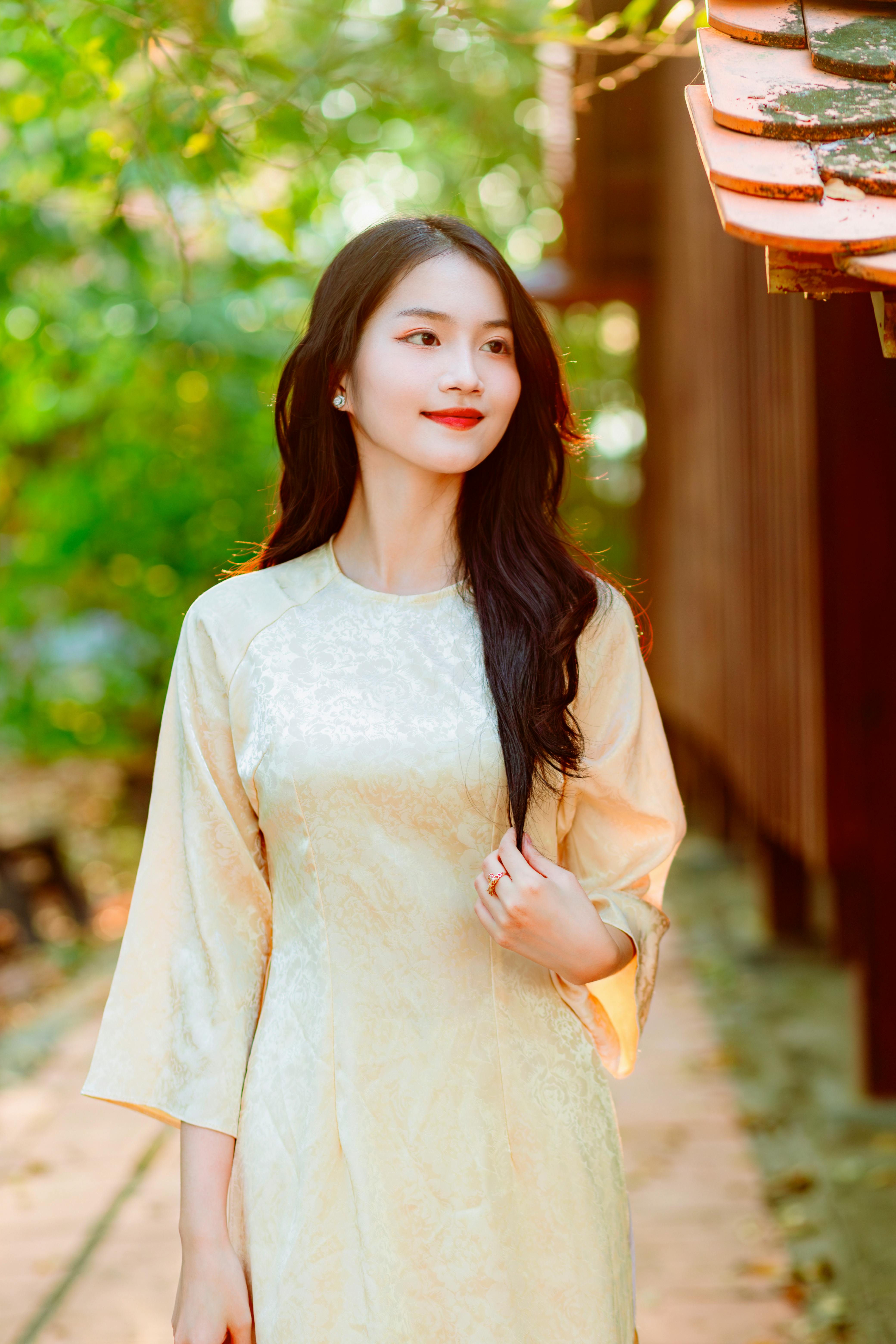 古建廊檐下,浅黄奥黛与光影的搭配,勾勒出独属于东方的温婉氛围。 垂顺的长发、柔黄的奥黛,还有手里轻握的折扇,每一处细节都透着雅致与灵动。或抬手轻扶发丝,或侧身回望,或静静站在廊下,暖调的阳光透过树叶洒在身上,晕开一层温柔的光泽,把户外的清新与东方的温婉完美融合。