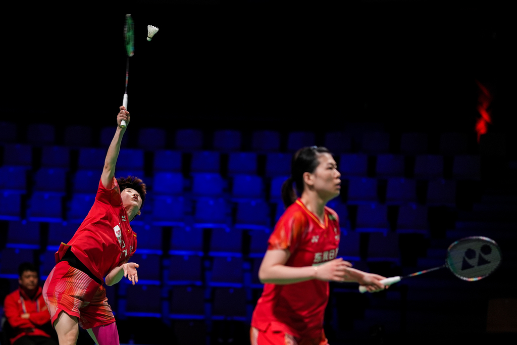 随后进行的女双比赛中,世界排名第一的刘圣书与谭宁展现出明显优势。面对普里娅与米什拉的组合,两位中国选手在场上节奏掌控出色,攻防衔接流畅,几乎不给对手喘息空间。两局比赛对手总得分仅为19分,中国组合以明显优势为队伍扩大领先。