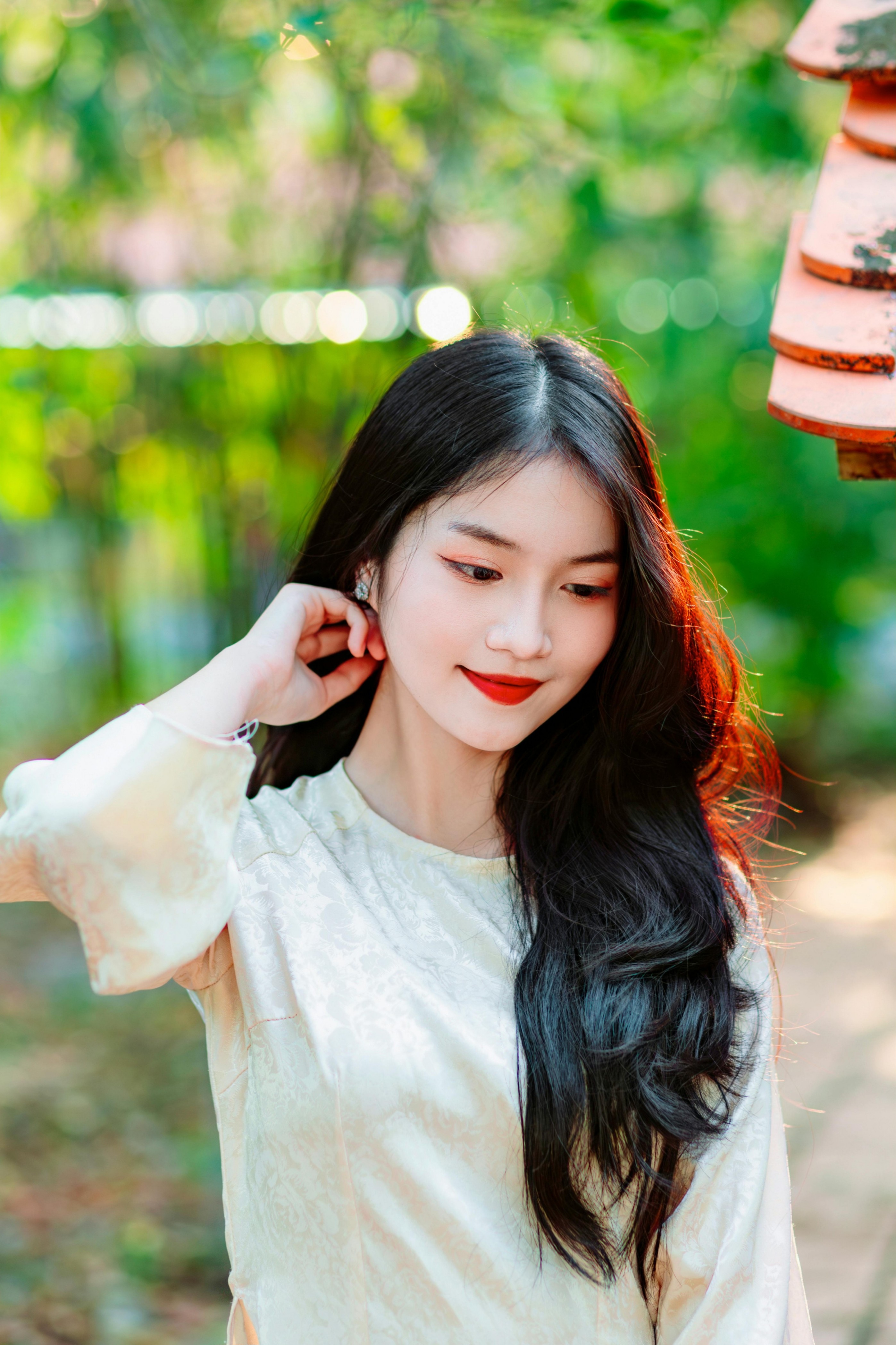 ✨ 抬手、垂眸、轻扶檐角,每一个不经意的动作,都在镜头里晕开独属于东方美人的温婉。红瓦、绿植、木廊,成了最好的背景板,把清冷又灵动的氛围感拉到了极致。图片来源:pexels