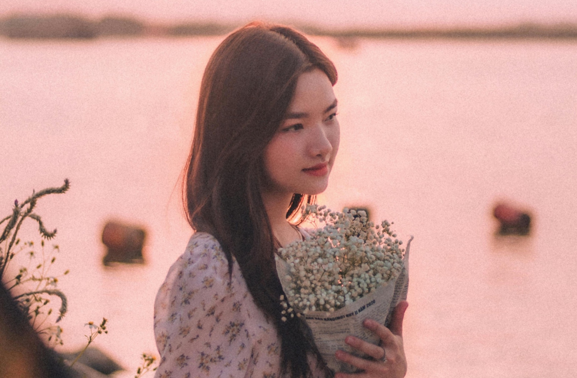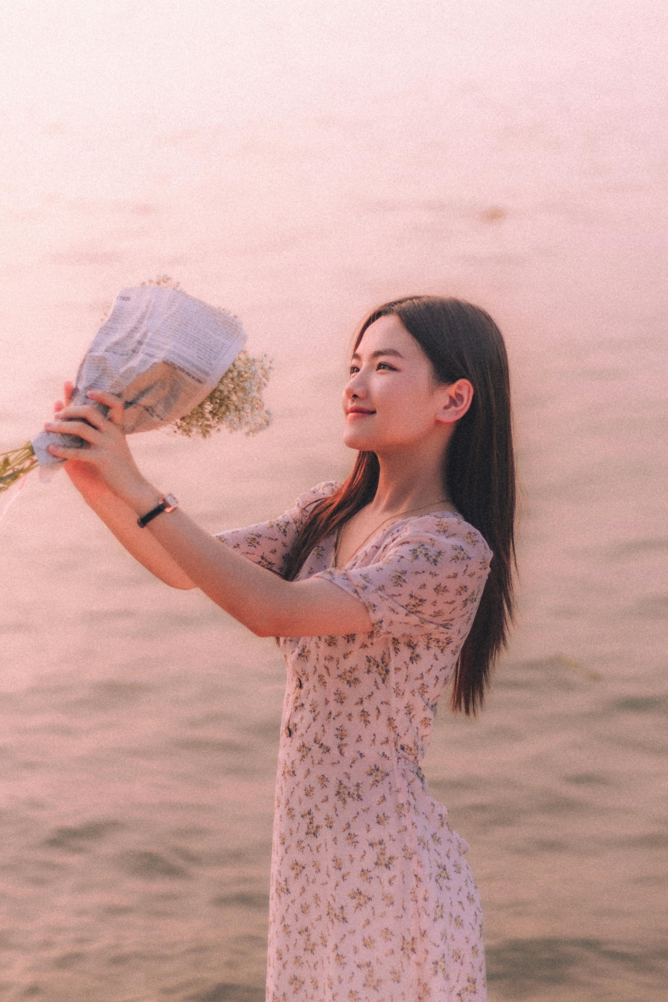 ✨ 或侧身看江,或仰头浅笑,或是把花束举向天空,每一个瞬间都被镜头温柔接住。落日的逆光勾勒出温柔的轮廓,粉调的滤镜让画面像一首安静的小诗,少女的眉眼和晚霞的温柔,揉成了独属于黄昏的浪漫。