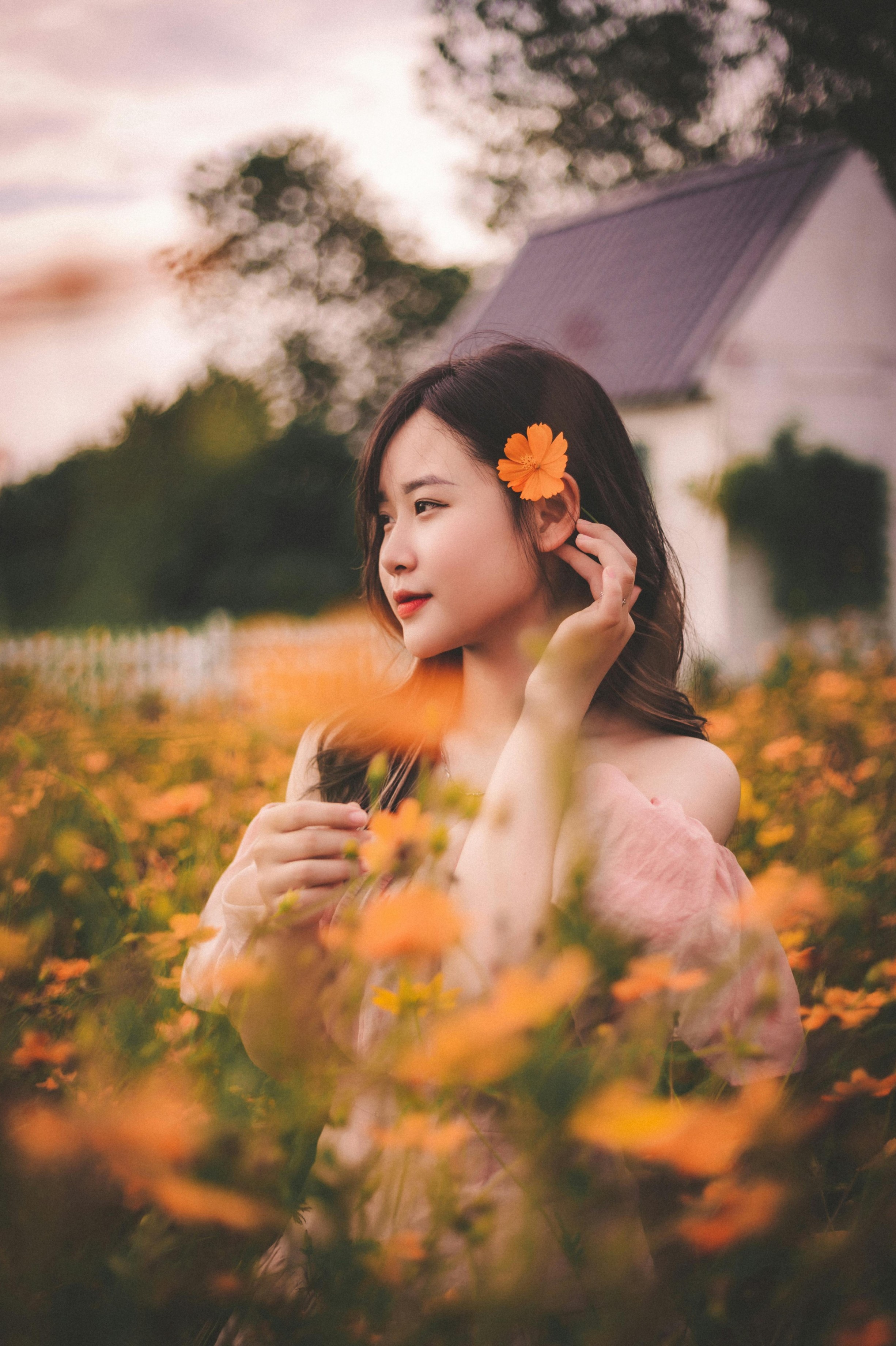 ✨ 指尖捻起一朵小花,或是把花别在发间,眉眼间带着淡淡的笑意,每一个动作都自然又灵动。远处的小木屋成了温柔的背景,复古的柔焦光影落在发丝和裙摆上,把田园少女的温柔与浪漫,都揉进了画面里。图片来源:pexels