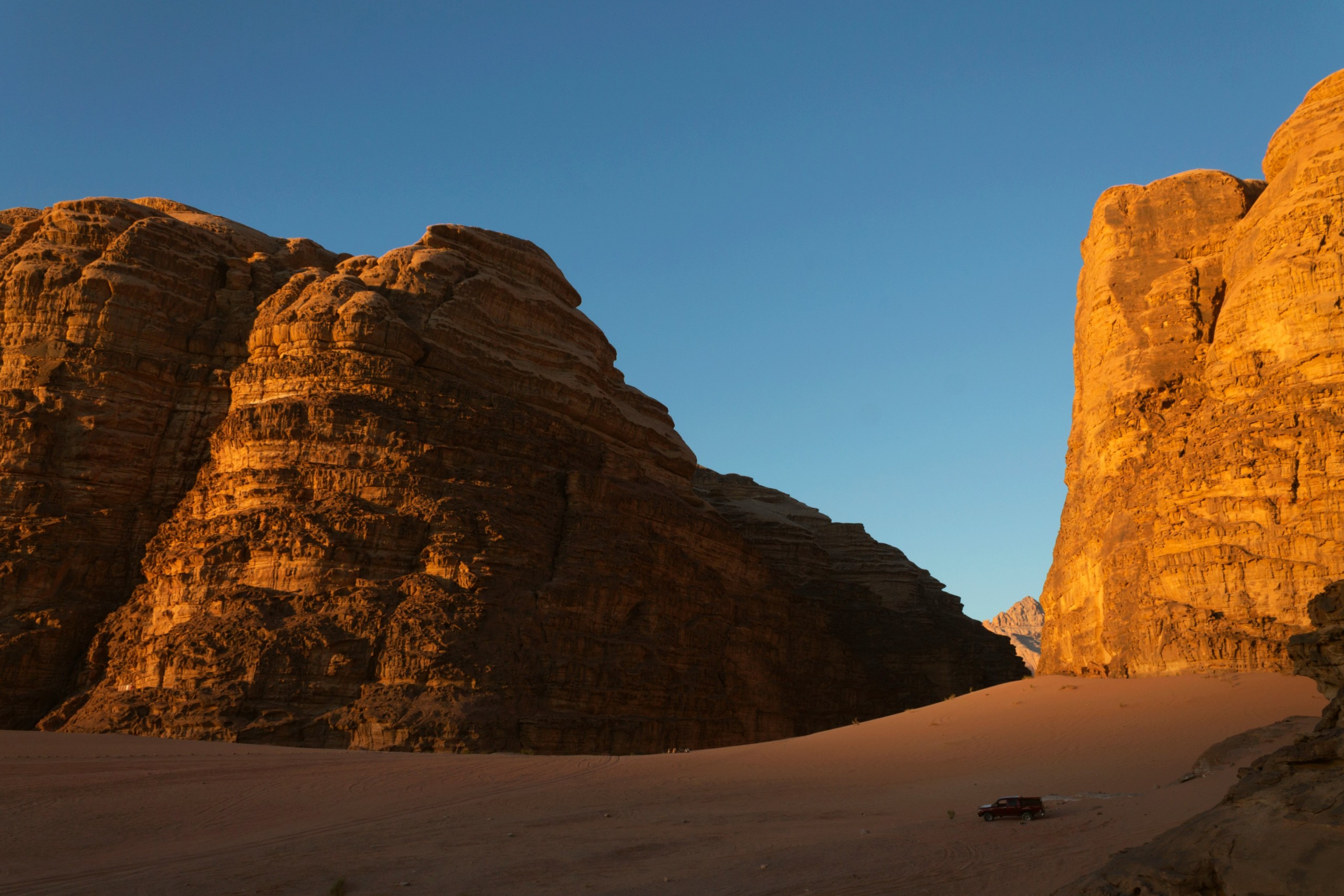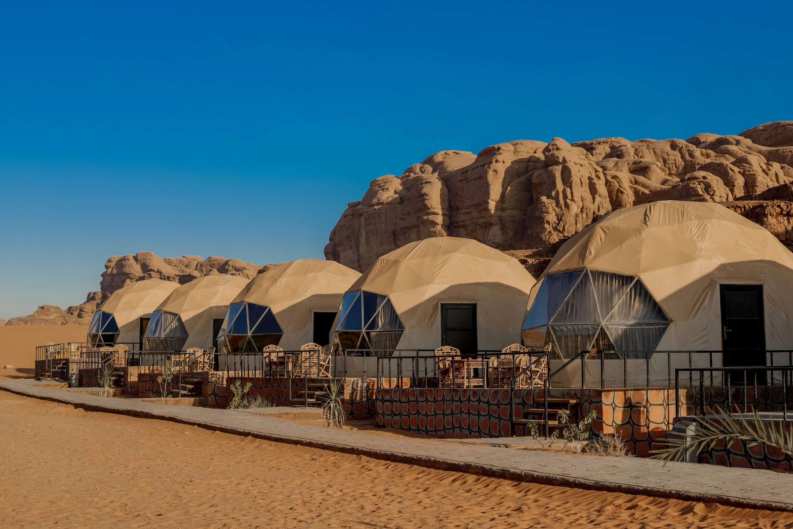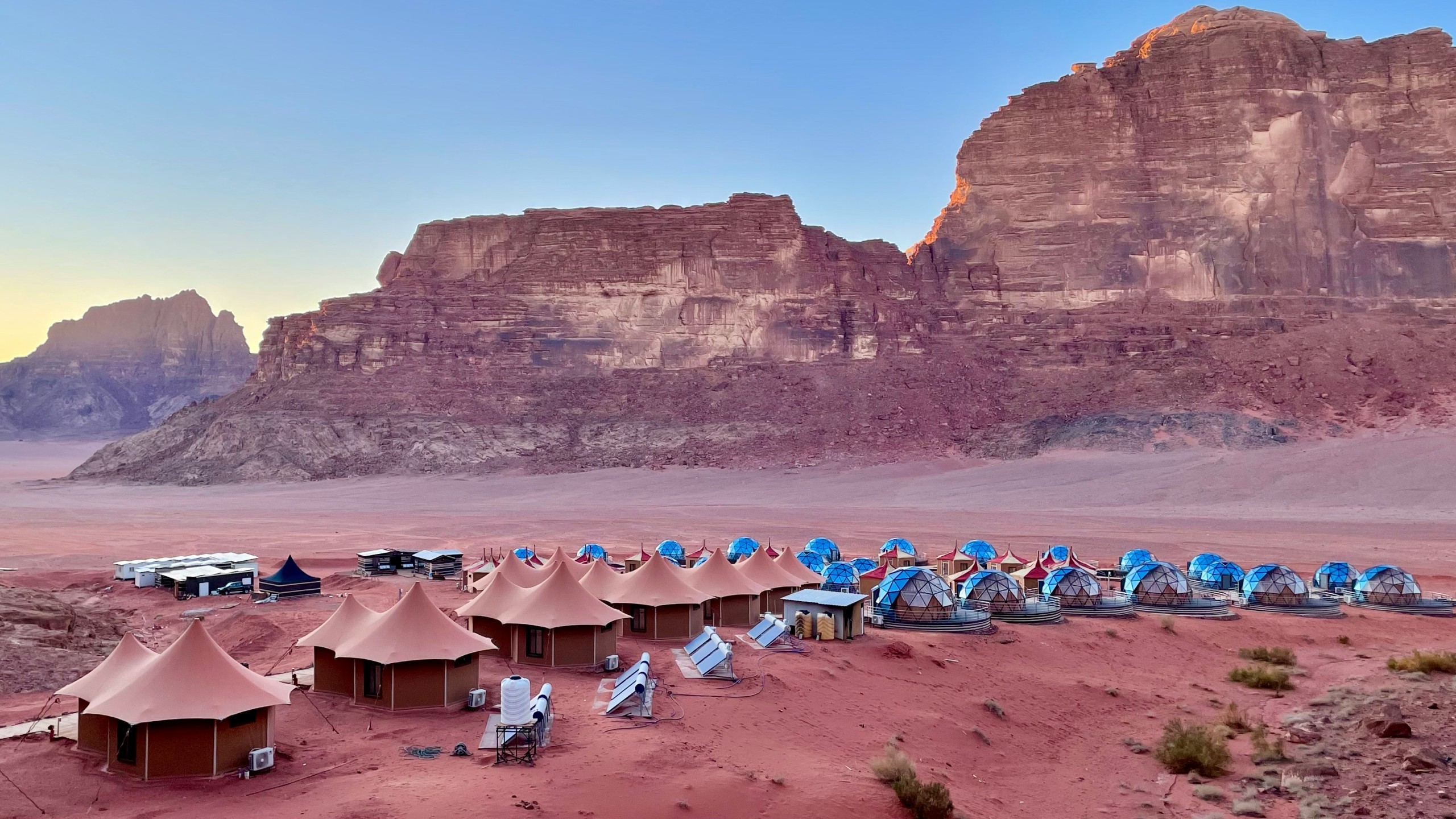 深度描述: 瓦迪拉姆又名“月亮谷”,是地球上最接近火星地貌的地方。这里的沙丘并非普通的黄色,而是由于高含量的氧化铁呈现出一种令人震撼的深粉色或赭红色。巨大的砂岩山脉经过千万年的风蚀,形成了如外星堡垒般崎岖的轮廓。这里没有植被,只有无尽的红色荒漠和沉默的巨石,日落时分,整个山谷会被一种超现实的血红色光芒笼罩。为了保护这片异星景观,约旦将其列为世界遗产。在这里,你甚至可以入住独特的“星空泡泡屋”,体验在红色星球醒来的感觉。