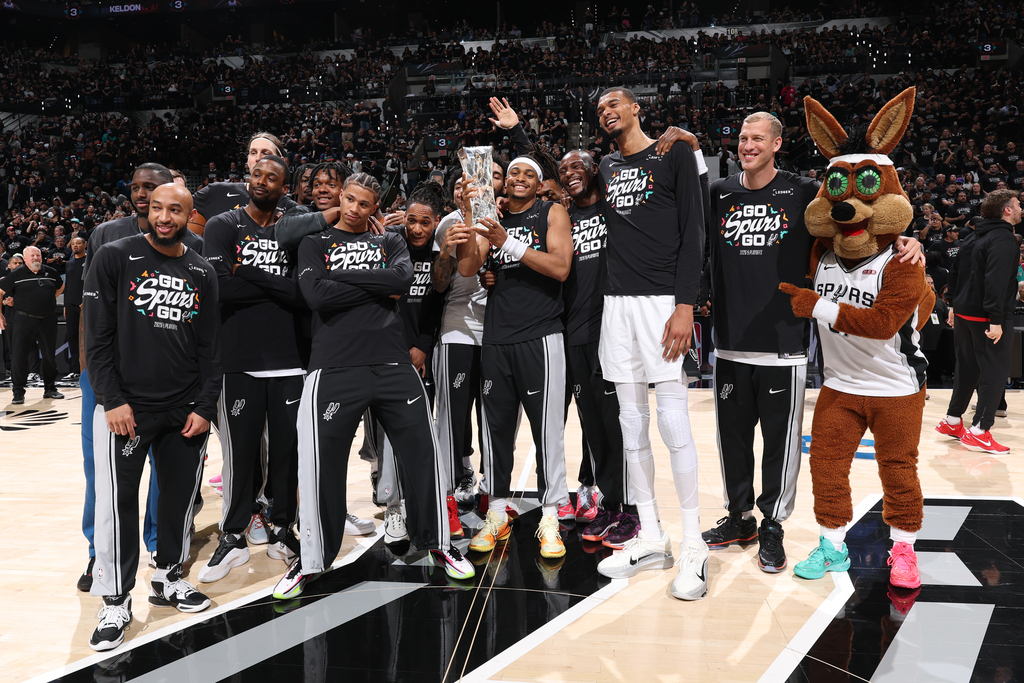 北京时间4月29日,2025至2026赛季美国职业篮球联赛季后赛西部首轮第五场比赛继续进行,圣安东尼奥马刺队坐镇主场迎战波特兰开拓者队。凭借稳定而高效的整体表现,马刺以114比95战胜对手,从而以总比分4比1结束系列赛,成功晋级西部次轮。 图片来源:VCG