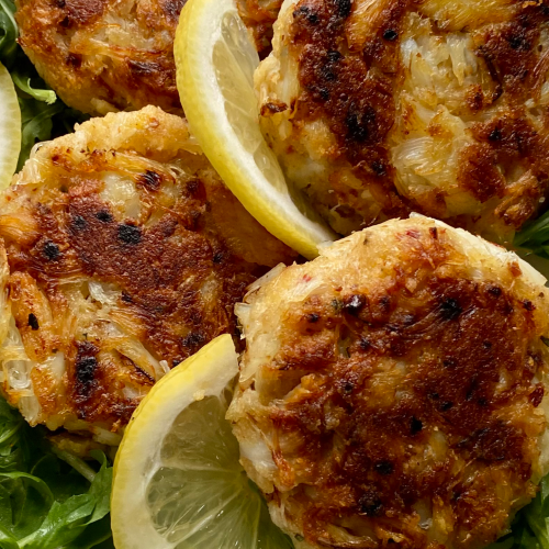 5、煎锅中倒入 2 英寸深的植物油,中火加热。油热后,分批放入裹好面包屑的蟹饼,注意翻面,每批煎约 20 分钟至两面呈褐色。用厨房纸巾吸去多余油脂,放在盘子上。