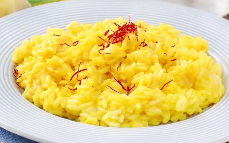 200 毫升鸡汤、15克藏红花丝、45 克无盐黄油、2 个洋葱,切碎、400克糯米、200毫升清爽型白葡萄酒、60克生骨髓、100克芝士碎、适量盐和胡椒粉
