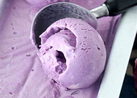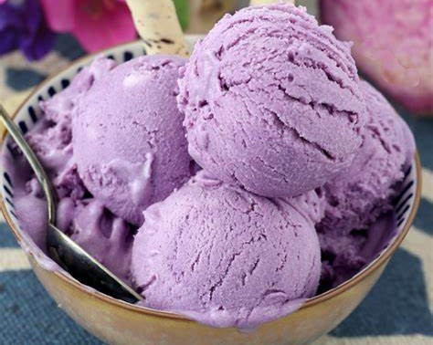 4、打发椰奶油:取出冷藏的椰浆,将上层凝结的椰奶油小心舀入一个大的冷藏碗中,用打蛋器或电动搅拌器将椰奶油打发至蓬松,出现柔软的尖峰。接着倒入冷藏好的紫薯椰浆,根据喜好加入几滴紫色食用色素,轻轻翻拌均匀。最后将混合物装入密封保鲜盒,放入冰箱冷冻至少 4 小时,冻至完全凝固就可以享用啦!