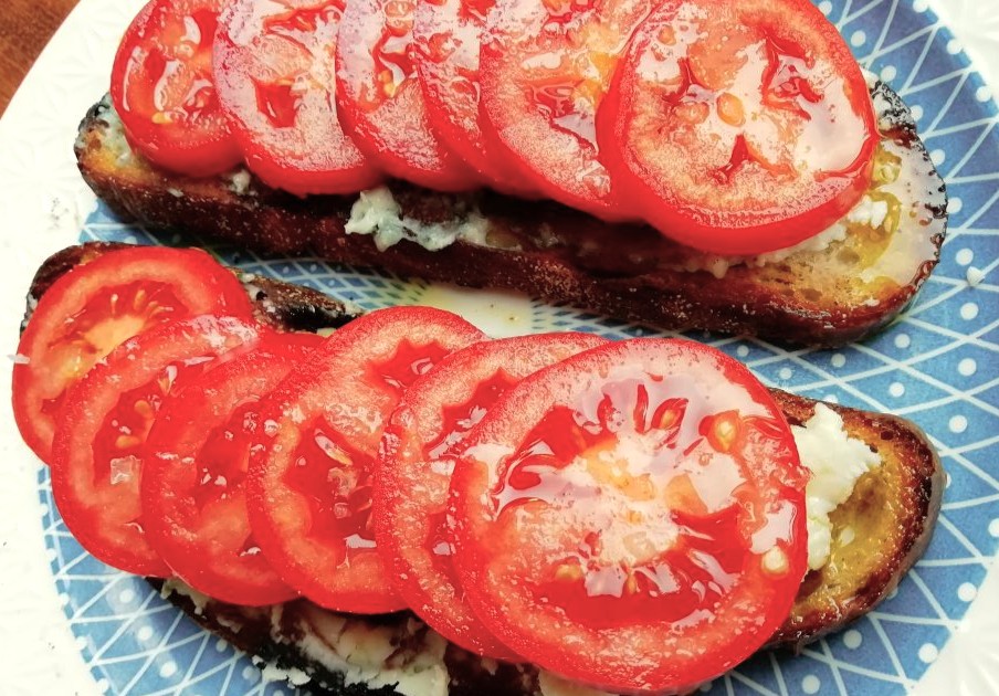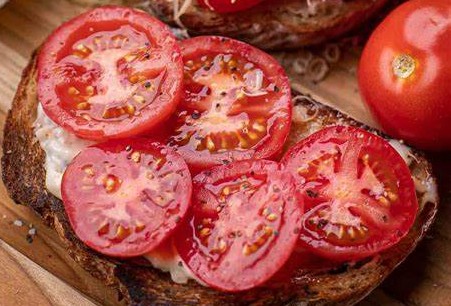 2、增添风味:趁着面包还温热,用蒜瓣轻轻擦拭一面,蒜香会慢慢渗入面包纹理,接着把软化的奶油奶酪均匀涂抹在面包上,再给番茄片撒上细盐调味,让番茄提前释放鲜甜汁水。