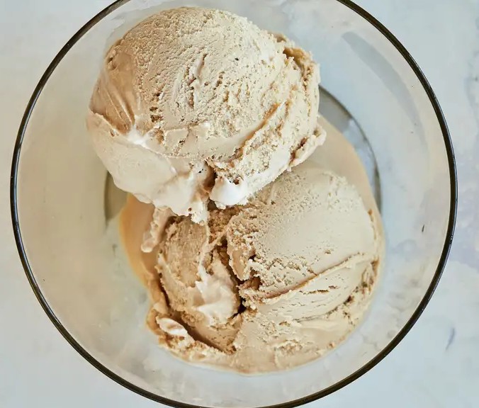 4、冷冻成型:将冷藏好的冰淇淋基底倒入冰淇淋机,按照机器的操作指南进行搅拌制作。制作完成后,把细腻绵密的冰淇淋装入密封容器,放入冷冻室冷冻至少 4 个小时。待冰淇淋完全凝固,用冰淇淋勺挖出一个个圆润的球,就可以品尝这一口浓郁与香甜啦!