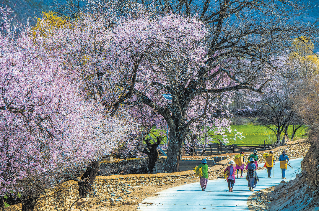 桃花道上 许新宇 摄 点评:艳阳天利于打造明度较高的效果,产生赏心悦目的风景画。画面一角的道路和行走其上的人物最是巧妙,其与大面积的花树形成的春之氛围,将春和景明的勃勃生机精彩表现出来。
