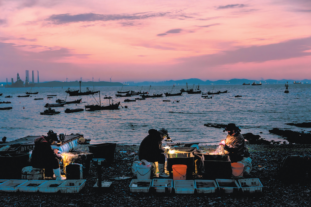 点评:作品展现了渔民在日出前挑灯奋战的工作场景。摄影师利用“蓝色时段”进行拍摄,色调和光比把握较好。远处星罗棋布的渔船剪影,与近处头灯下的工作画面产生了呼应与联系,既翔实地展现出工作环境,又不喧宾夺主。影像在冷暖、明暗间,突出了劳动者的艰辛。