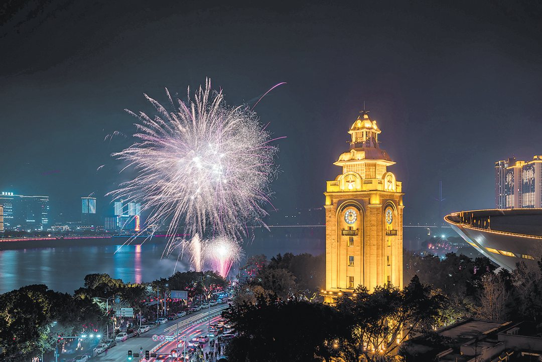 烟花绽放映钟楼  梁万东 摄